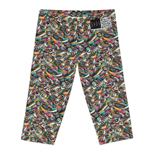 Urban Graffiti Fusion Eclectic Street Art Meets Modern Tech Culture Women's Capri Leggings - 8404 Design-55