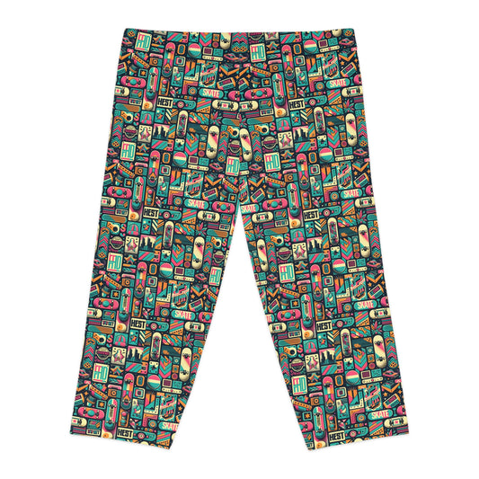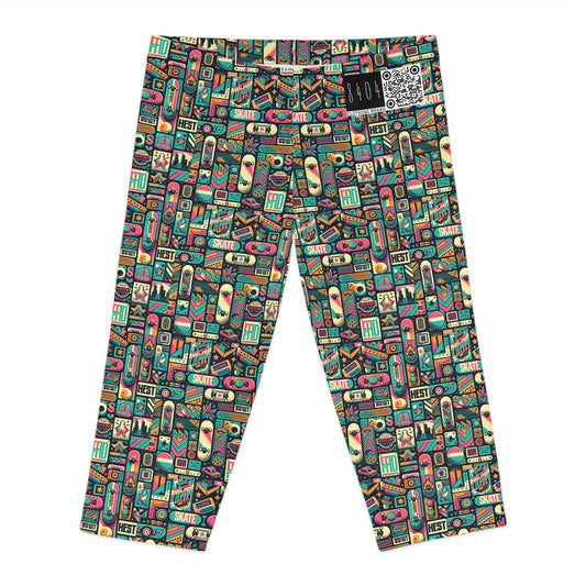 Skate Culture Revival Urban Retro Cool Women's Capri Leggings - 8404 Design-61