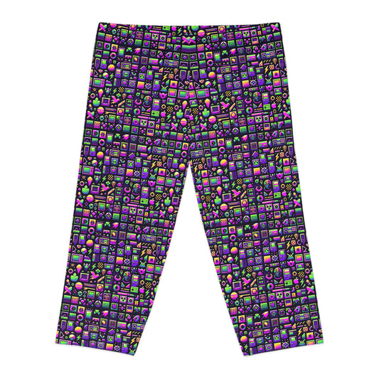 Digital Nostalgia Remix Modern Vintage Fusion Women's Capri Leggings - 8404 Design-67