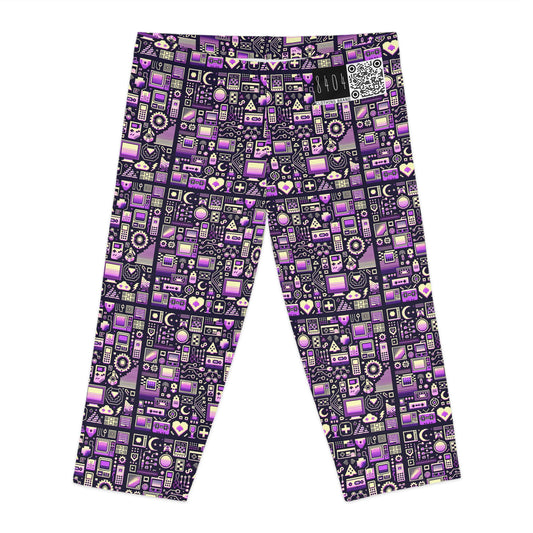 Digital Nostalgia Remix Modern Vintage Fusion Women's Capri Leggings - 8404 Design-54