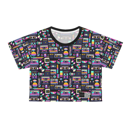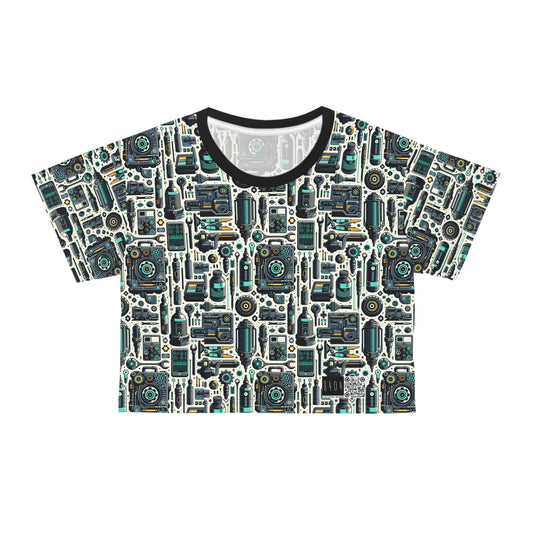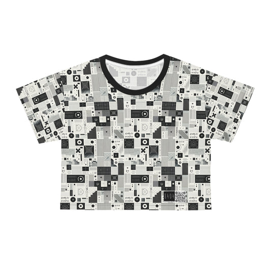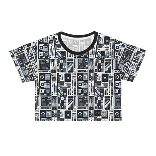 Digital Nostalgia Tech-Inspired Retro Fusion Crop Tee - 8404 Design-65