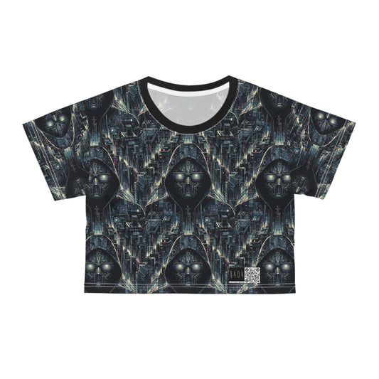 Tech Noir Aesthetics Tech-Forward Urban Dystopia Crop Tee - 8404 Design-44