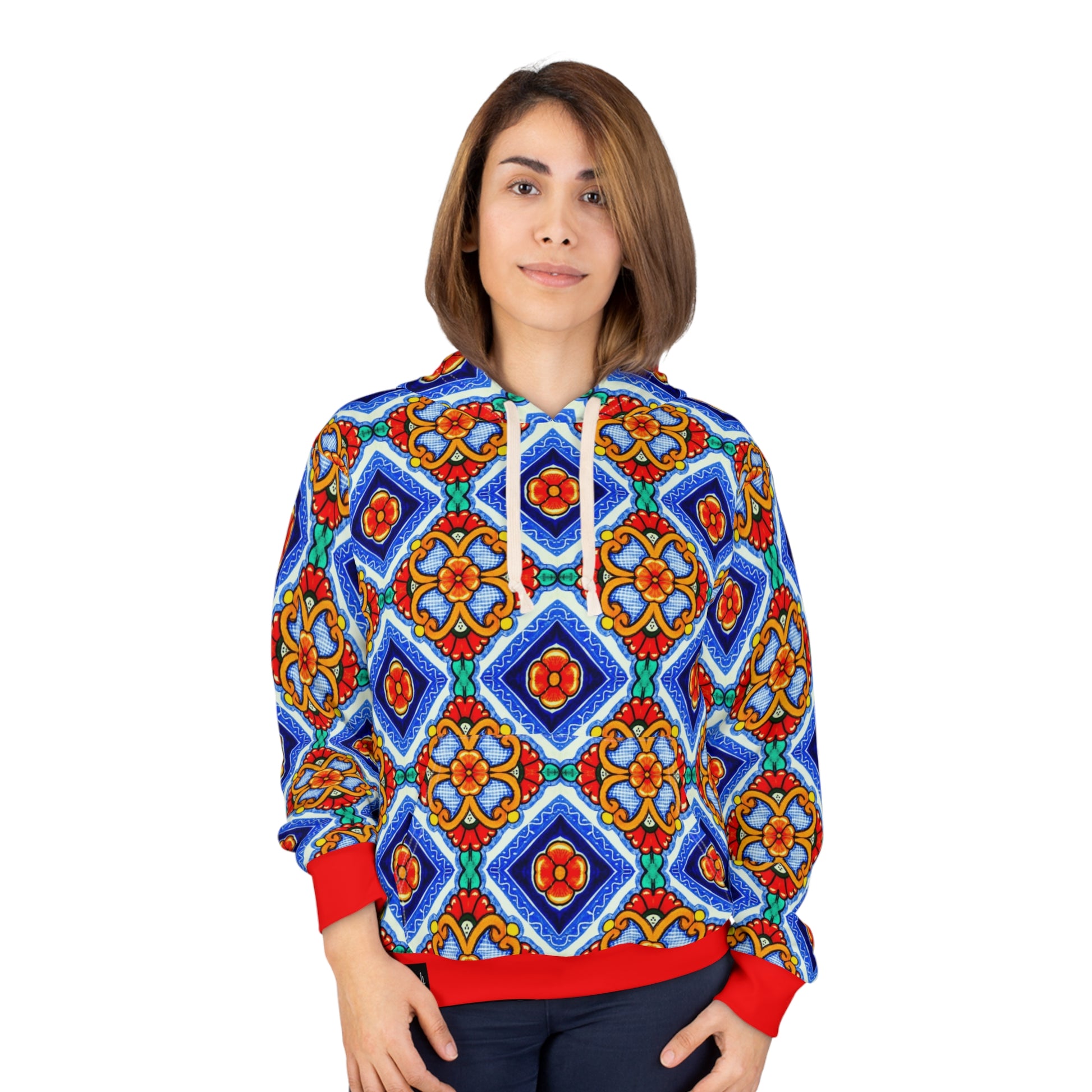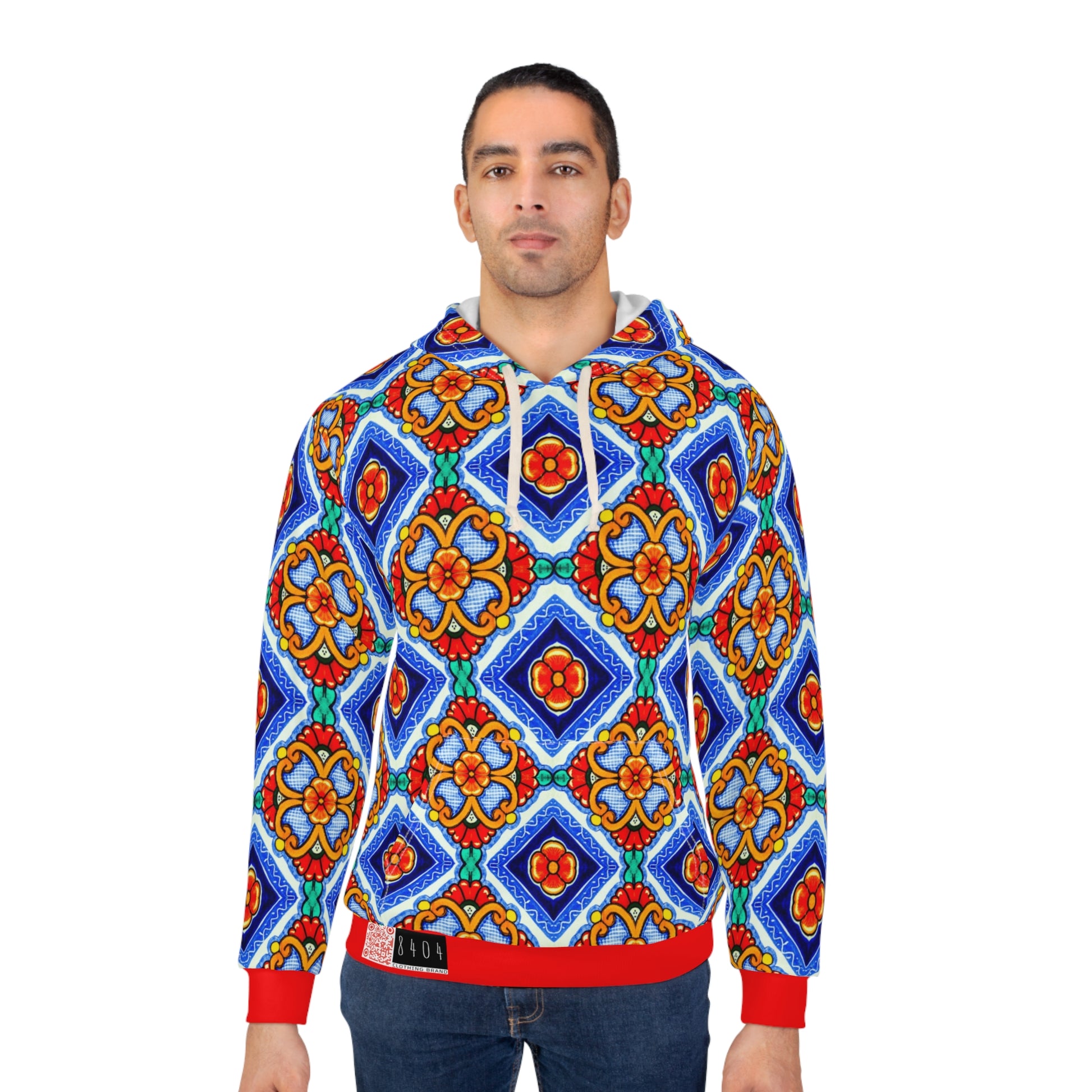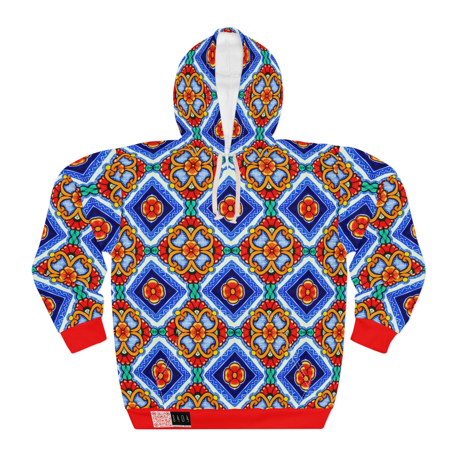 8404 Unisex Adult's "elegant Retro Mosaic" Fashion Pullover Hoodie in Red