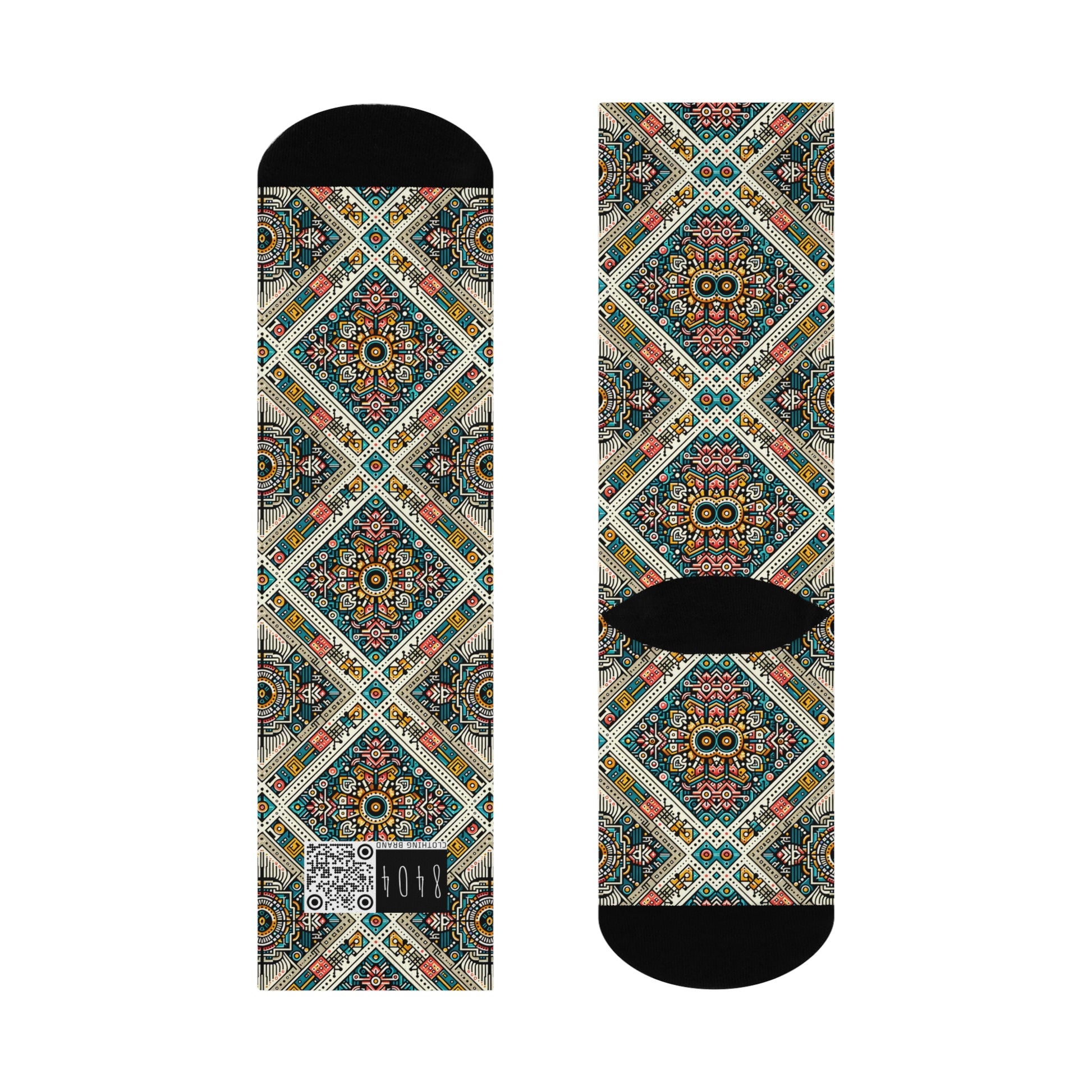 Cultural Fusion Tech Blend of Cultural Heritage With Tech-Inspired Elements Cushioned Crew Socks - 8404 Design-64