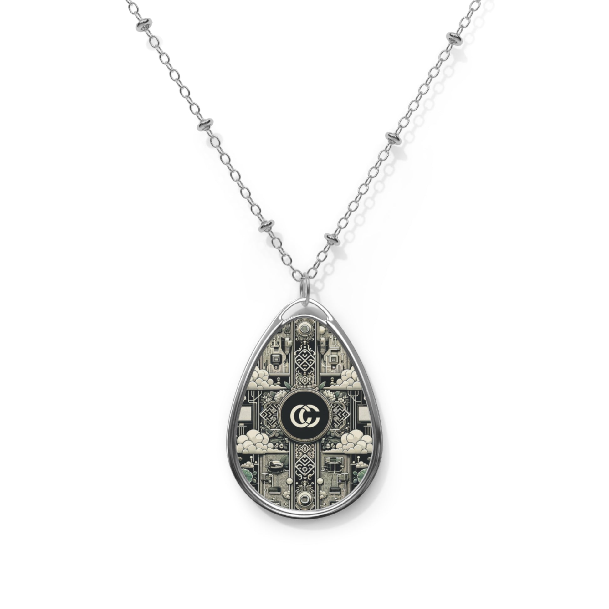 Cyber Garden Party Tech Garden Extravaganza Oval Necklace - 8404 Design-54