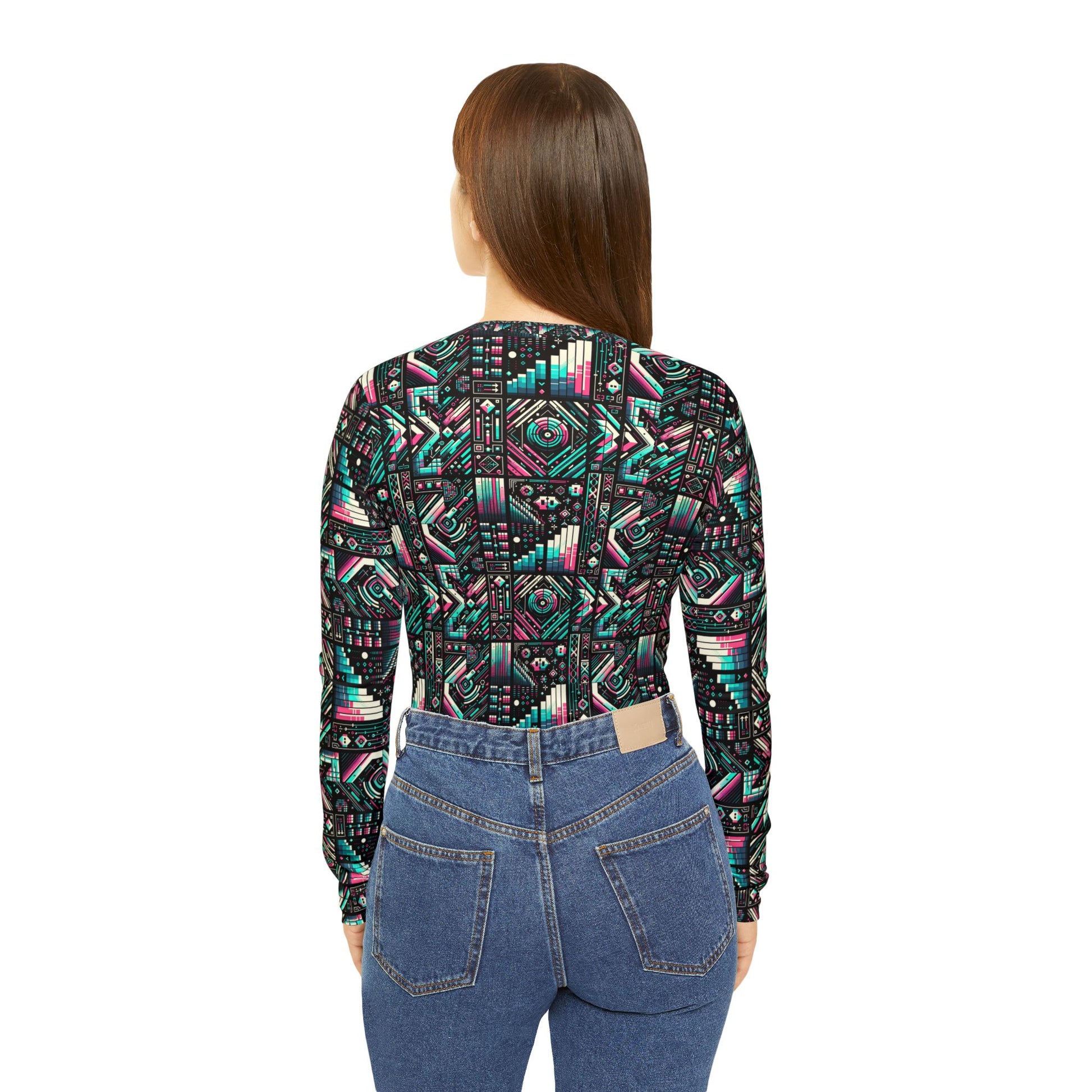 Digital Artistry Digital-native Streetwear Women's Long Sleeve V-neck Shirt - 8404 Design-60