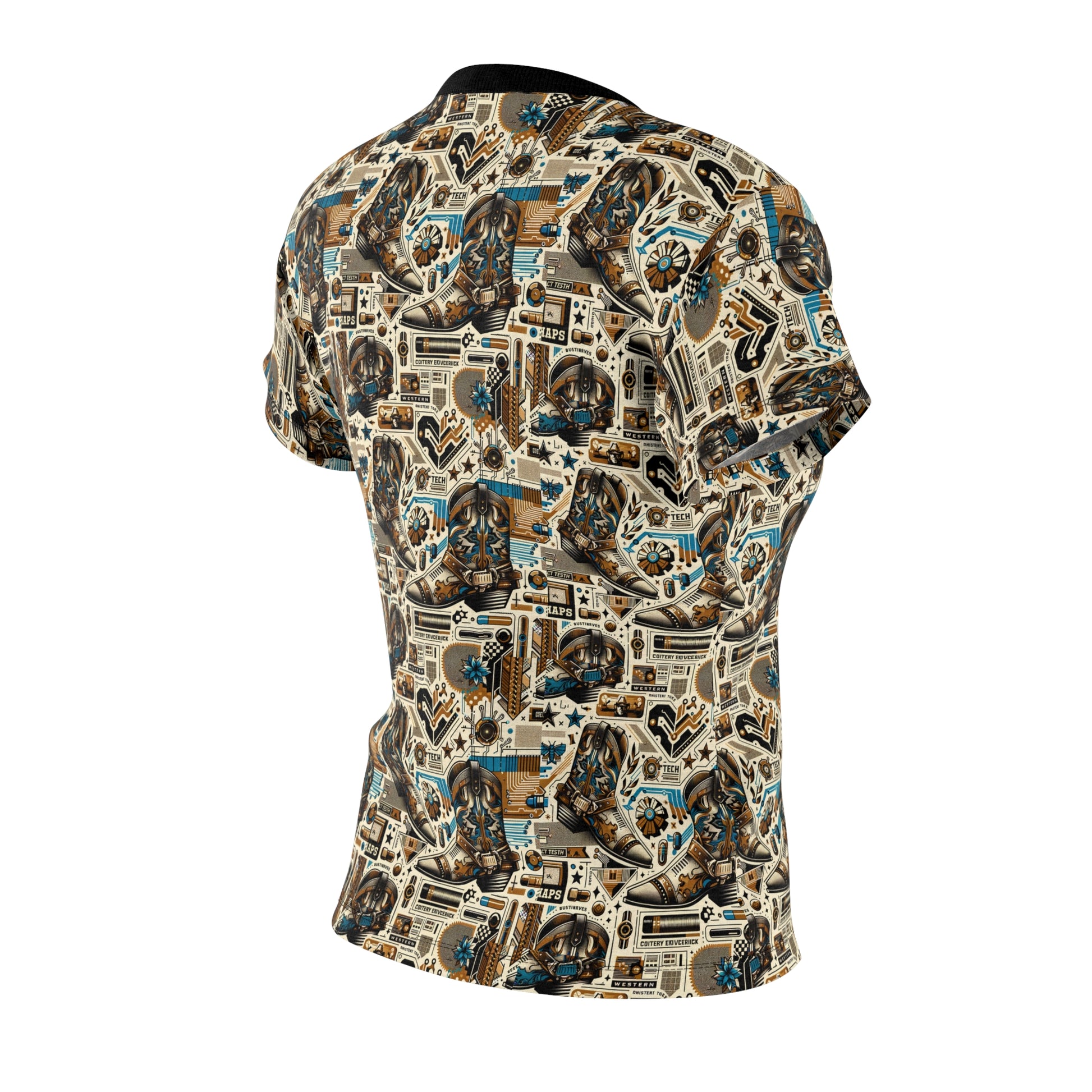 Digital Cowboy Chic Tech-Infused Western Fusion Women's Cut & Sew Tee - 8404 Design-45