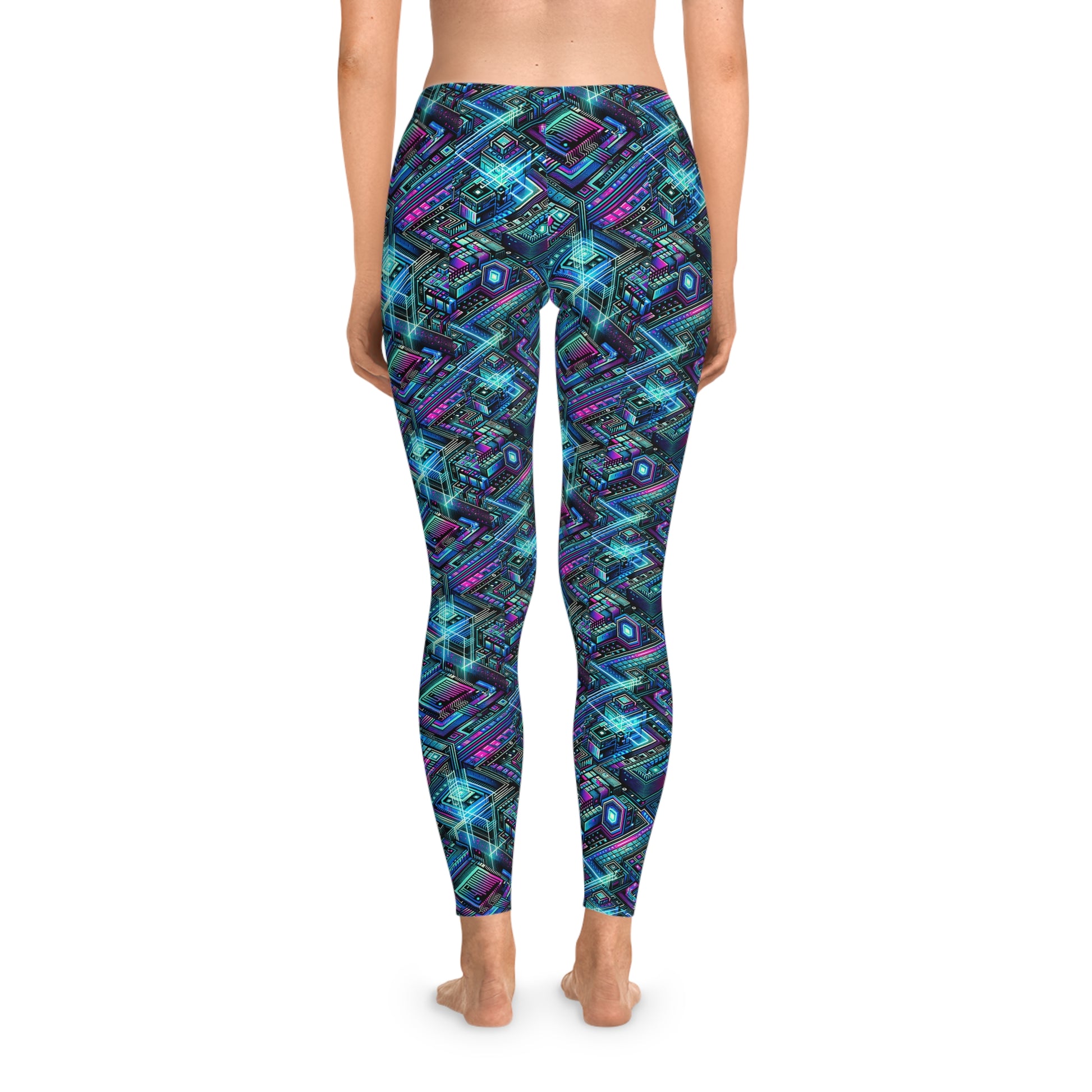 Digital Dreamland Futuristic Tech Aesthetic Stretch Leggings - 8404 Design-42