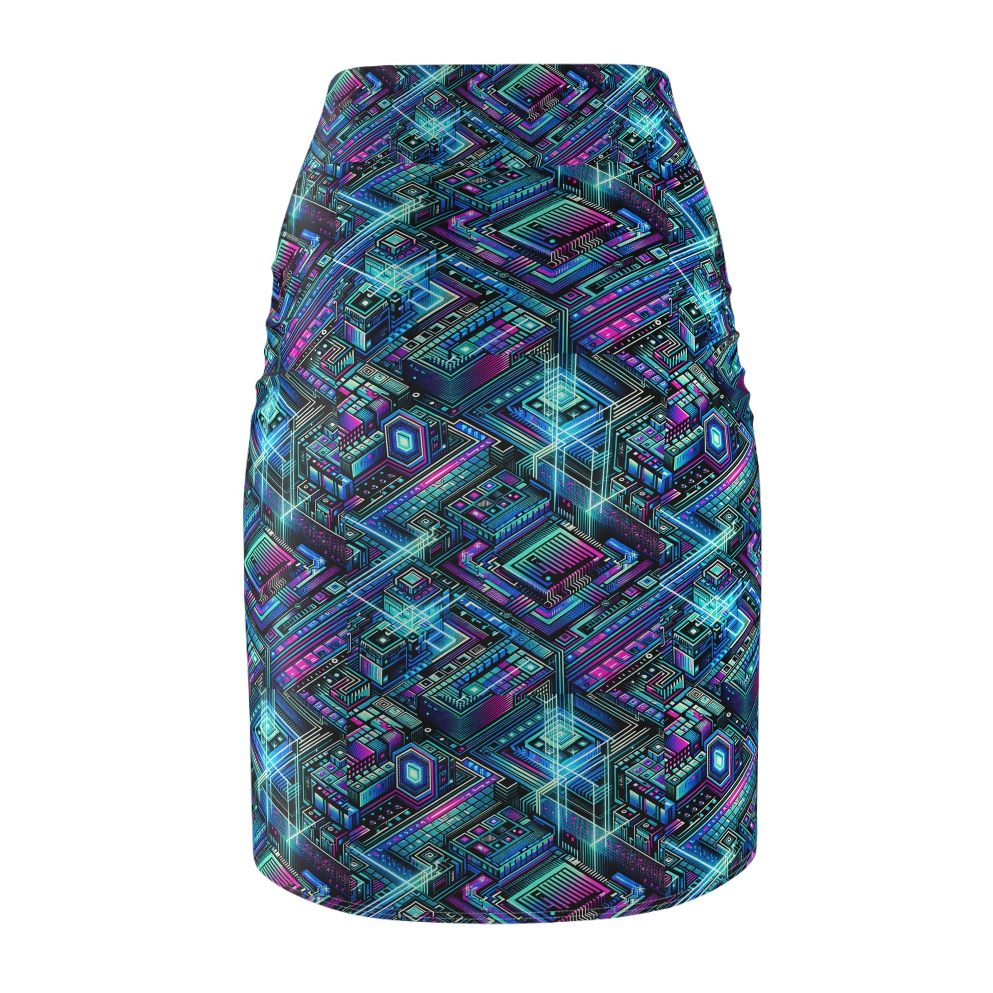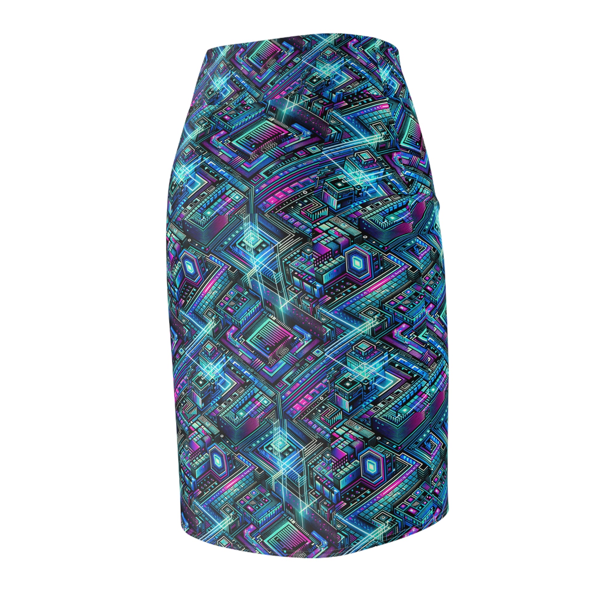 Digital Dreamland Futuristic Tech Aesthetic Women's Pencil Skirt - 8404 Design-42