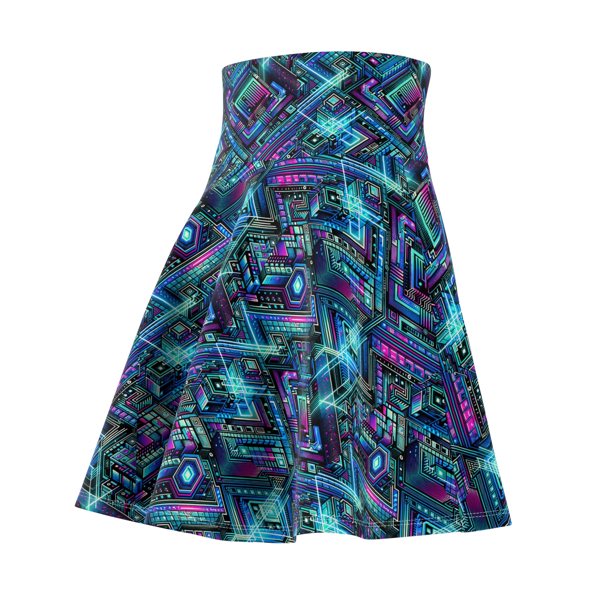 Digital Dreamland Futuristic Tech Aesthetic Women's Skater Skirt - 8404 Design-42