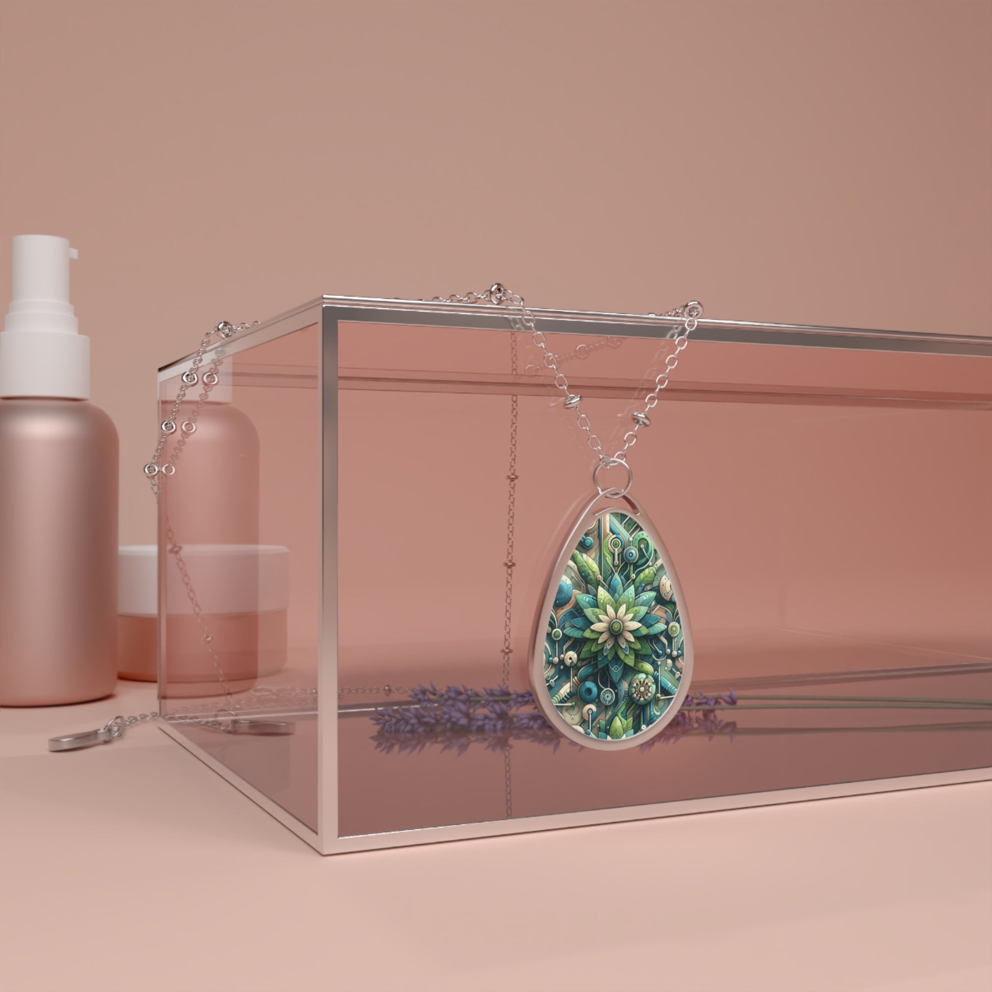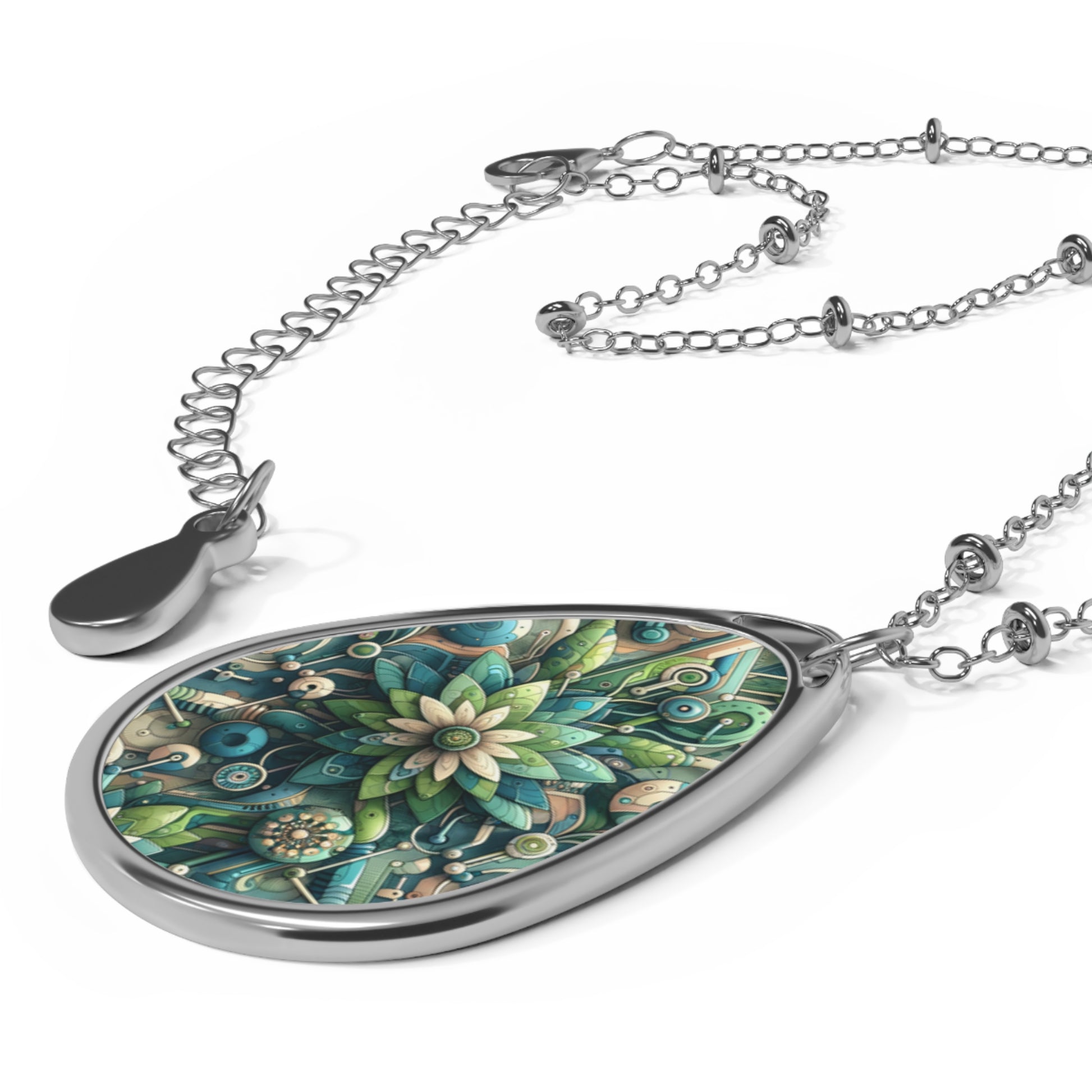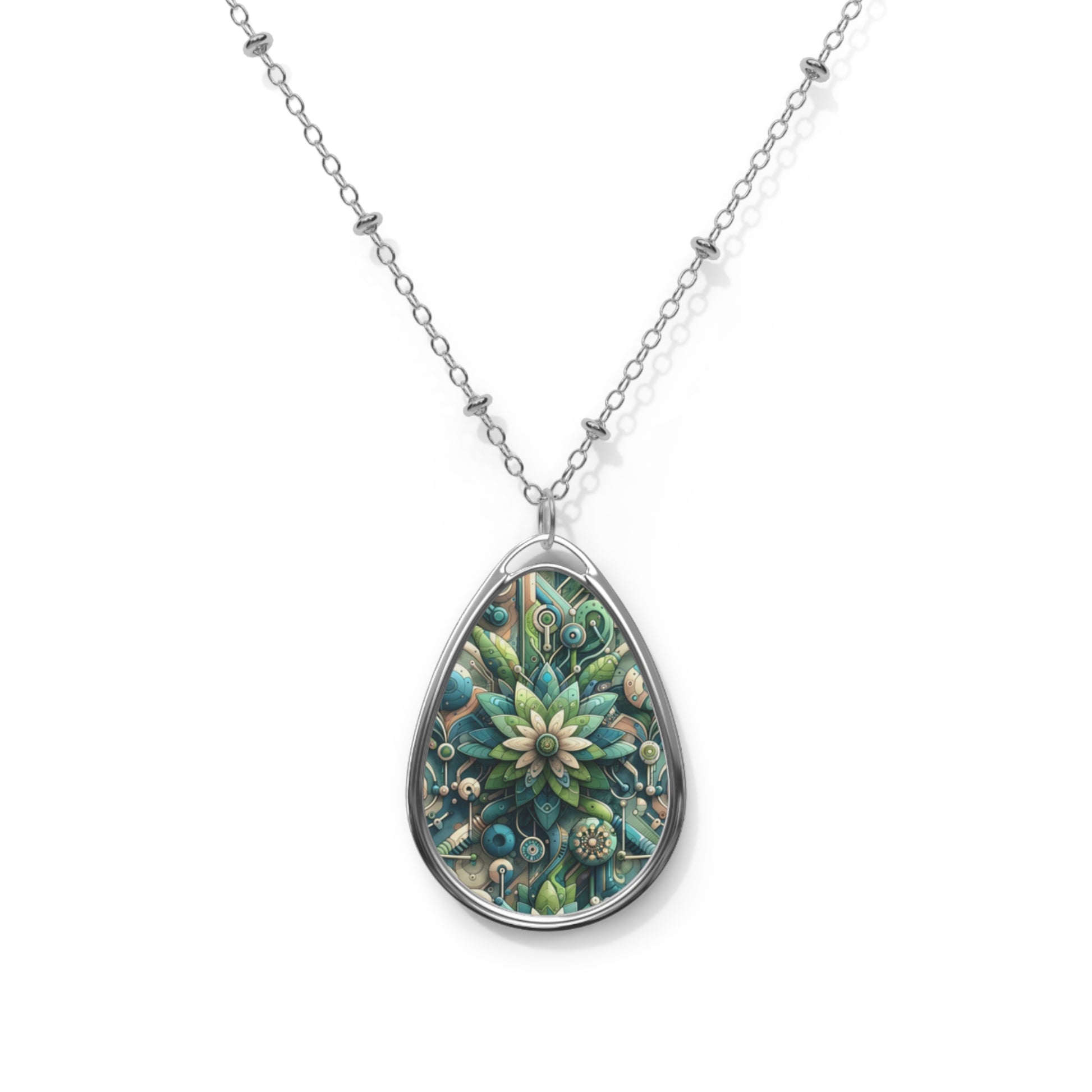 Digital Nature Fusion Tech-Inspired Nature Harmony Oval Necklace - 8404 Design-44