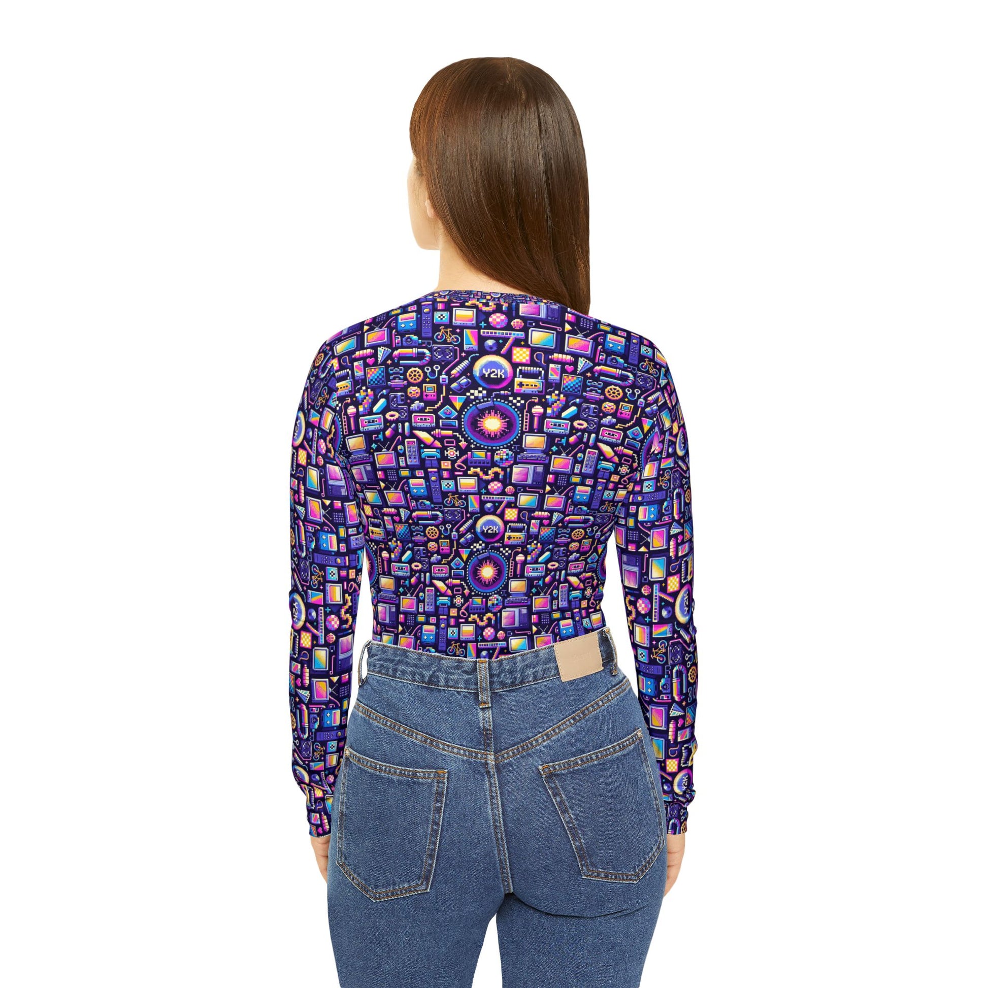 Digital Nostalgia Modern Retro Fusion Women's Long Sleeve V-Neck Shirt - 8404 Design-64