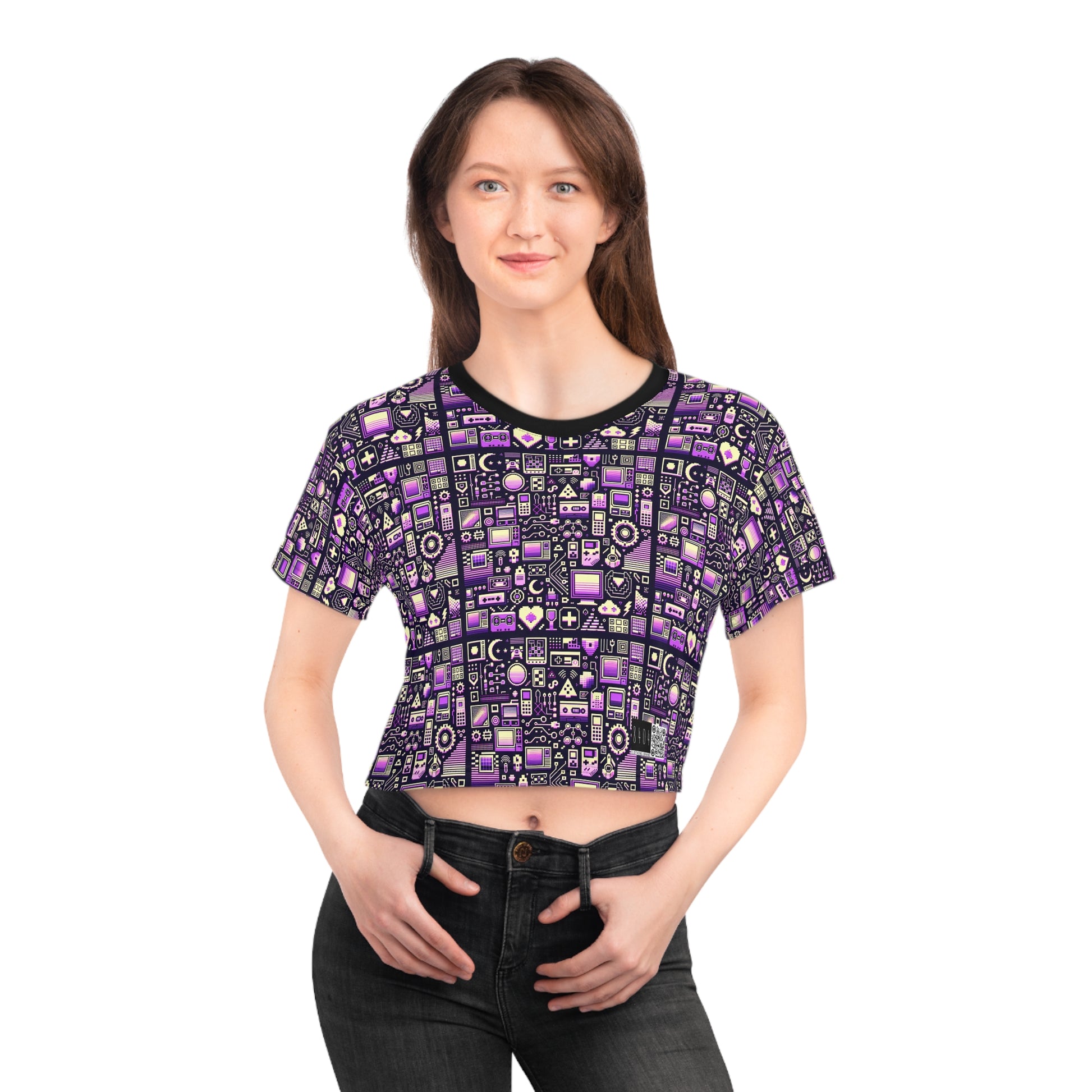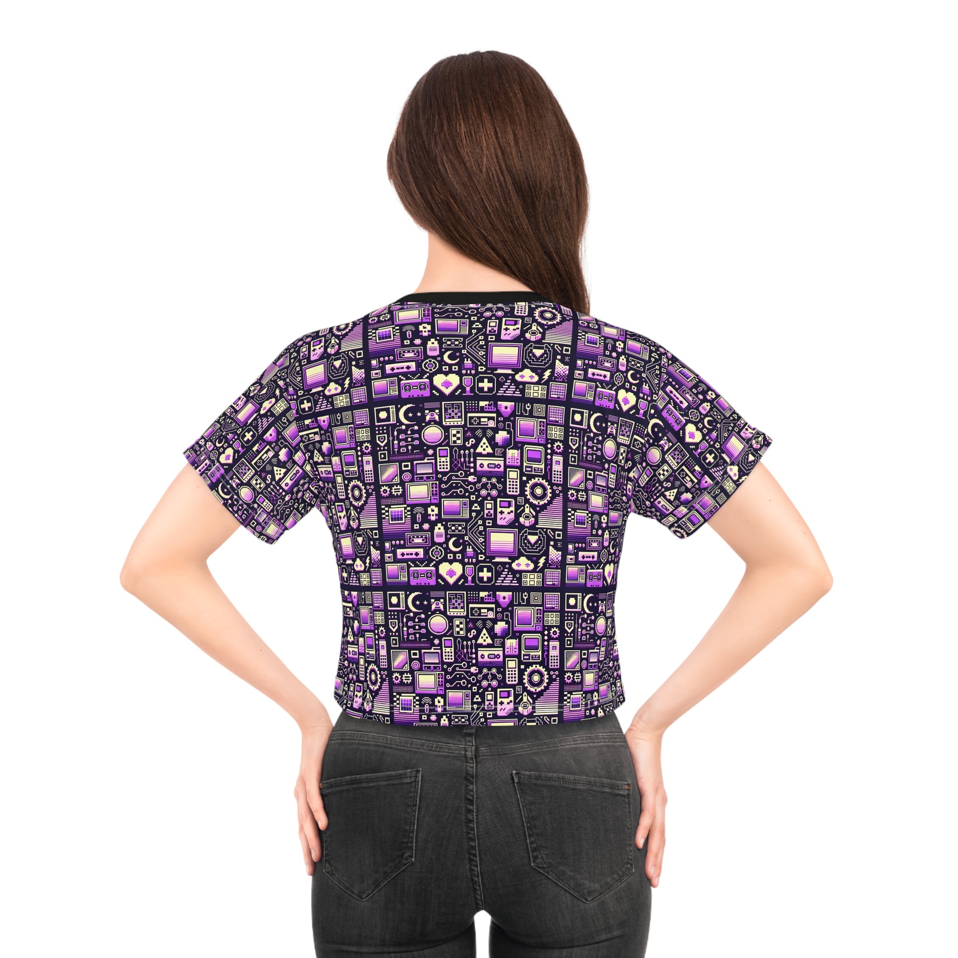 Digital Nostalgia Remix Modern Vintage Fusion Crop Tee - 8404 Design-54