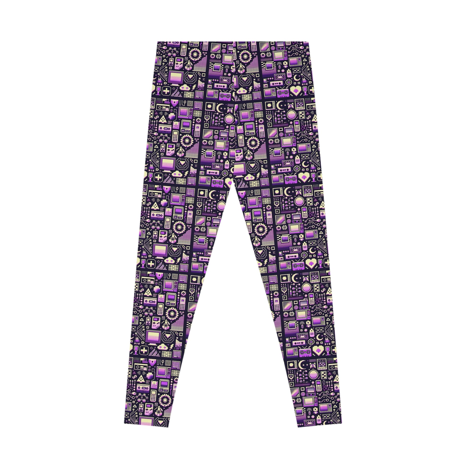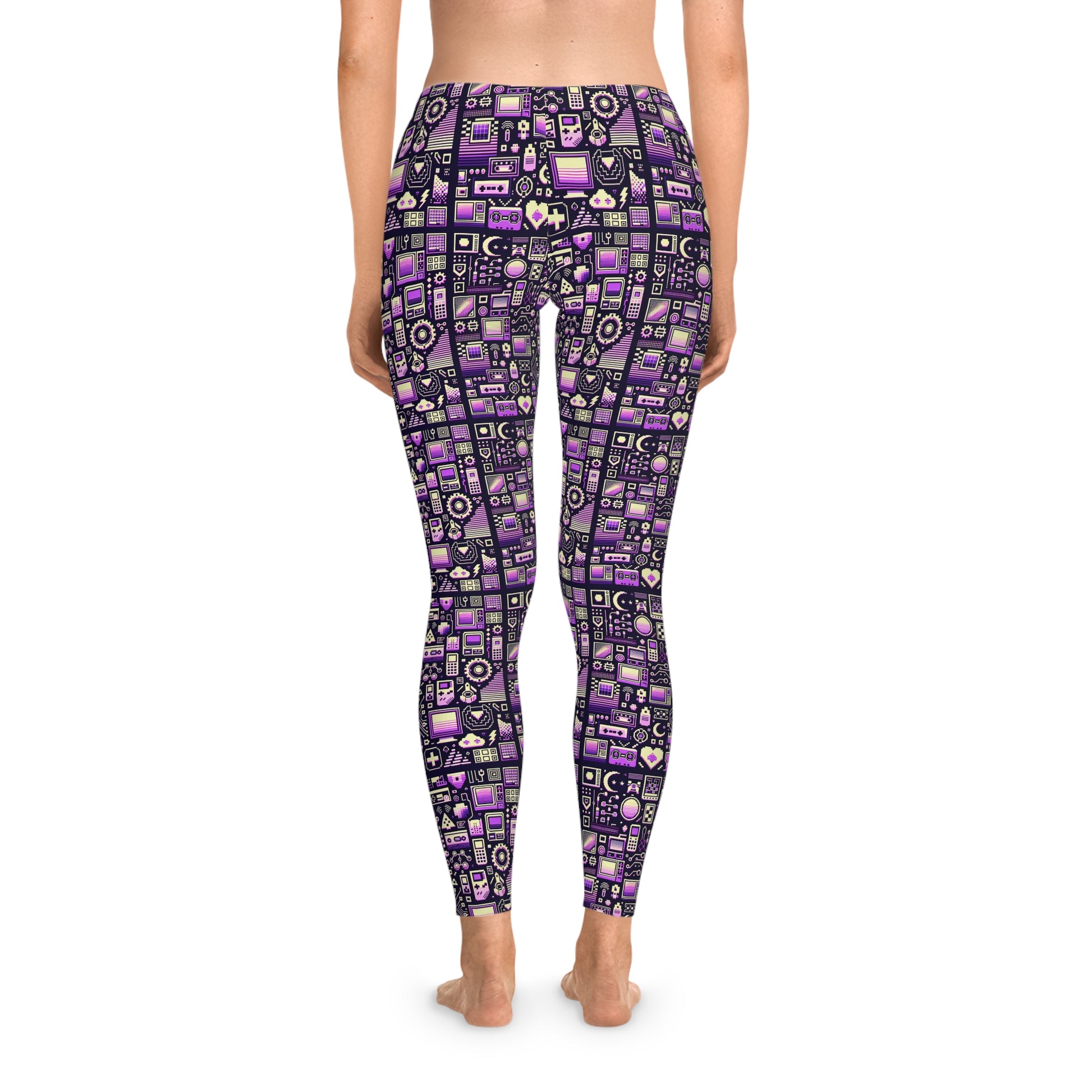 Digital Nostalgia Remix Modern Vintage Fusion Stretch Leggings - 8404 Design-54