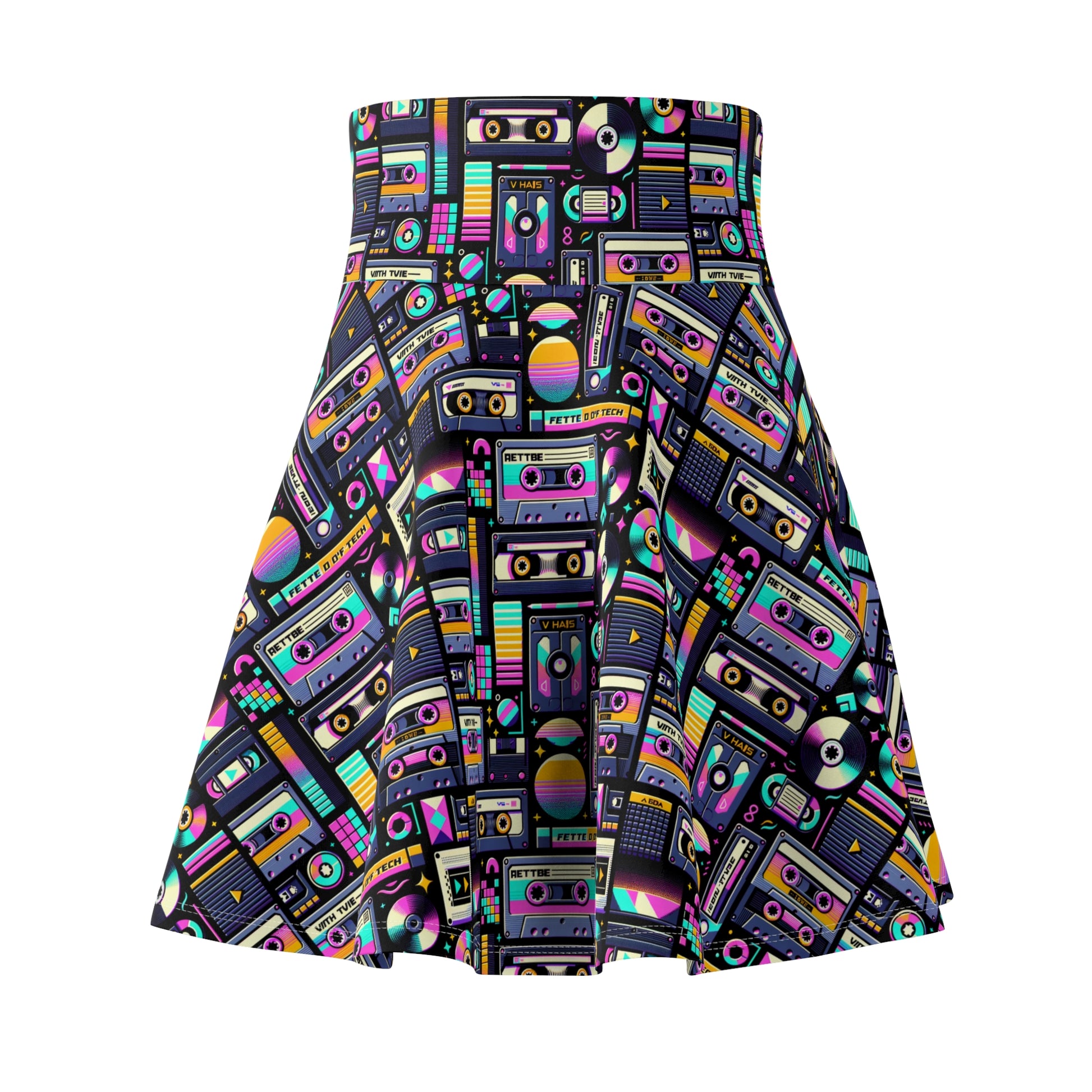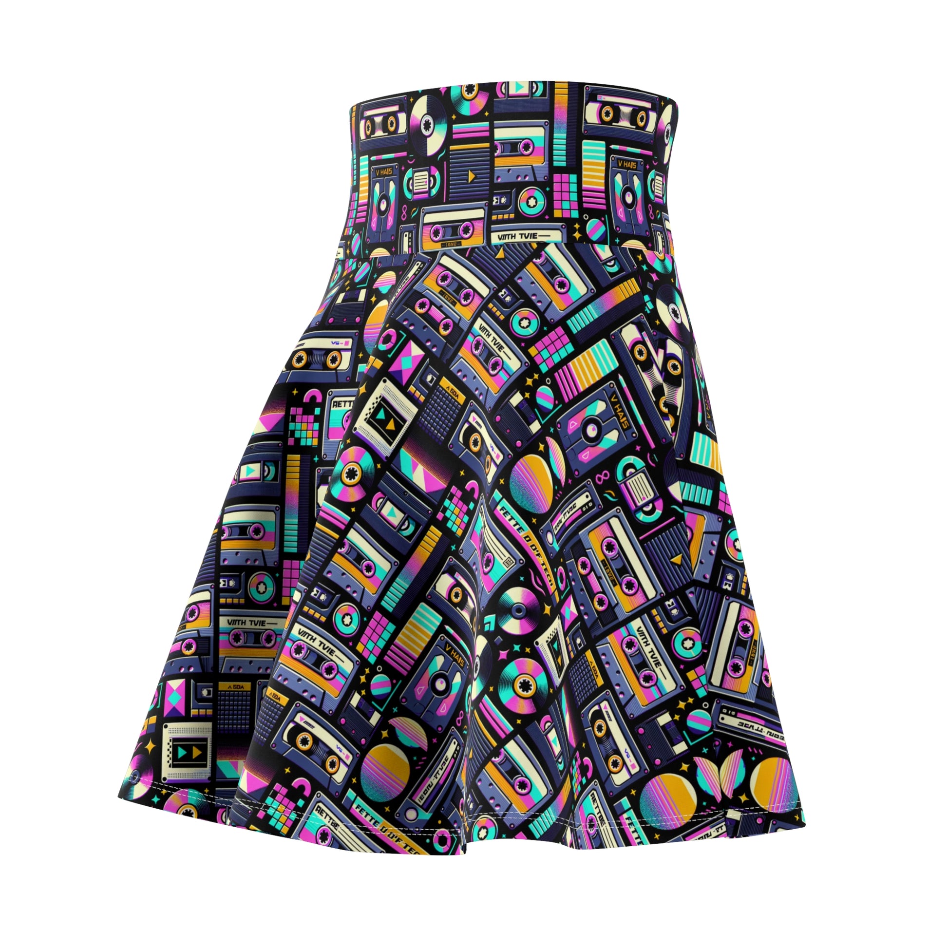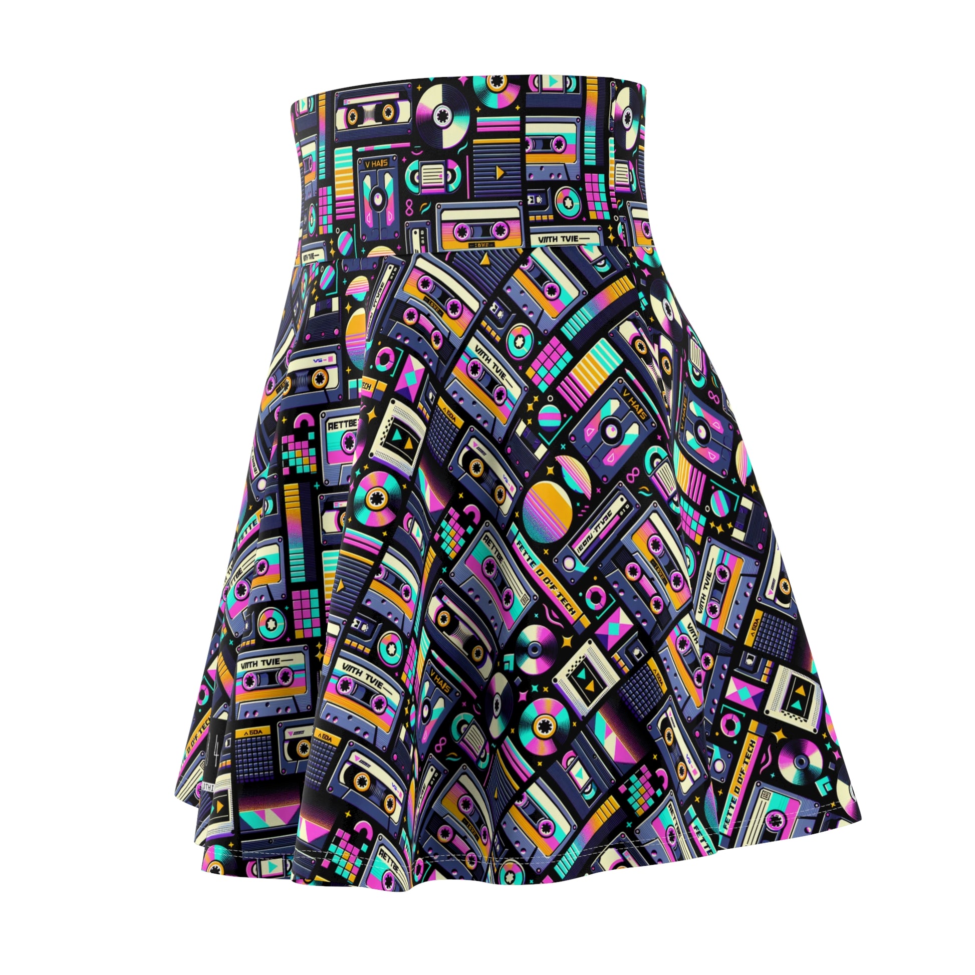 Digital Nostalgia Tech-Inspired Retro Fusion Women's Skater Skirt - 8404 Design-48