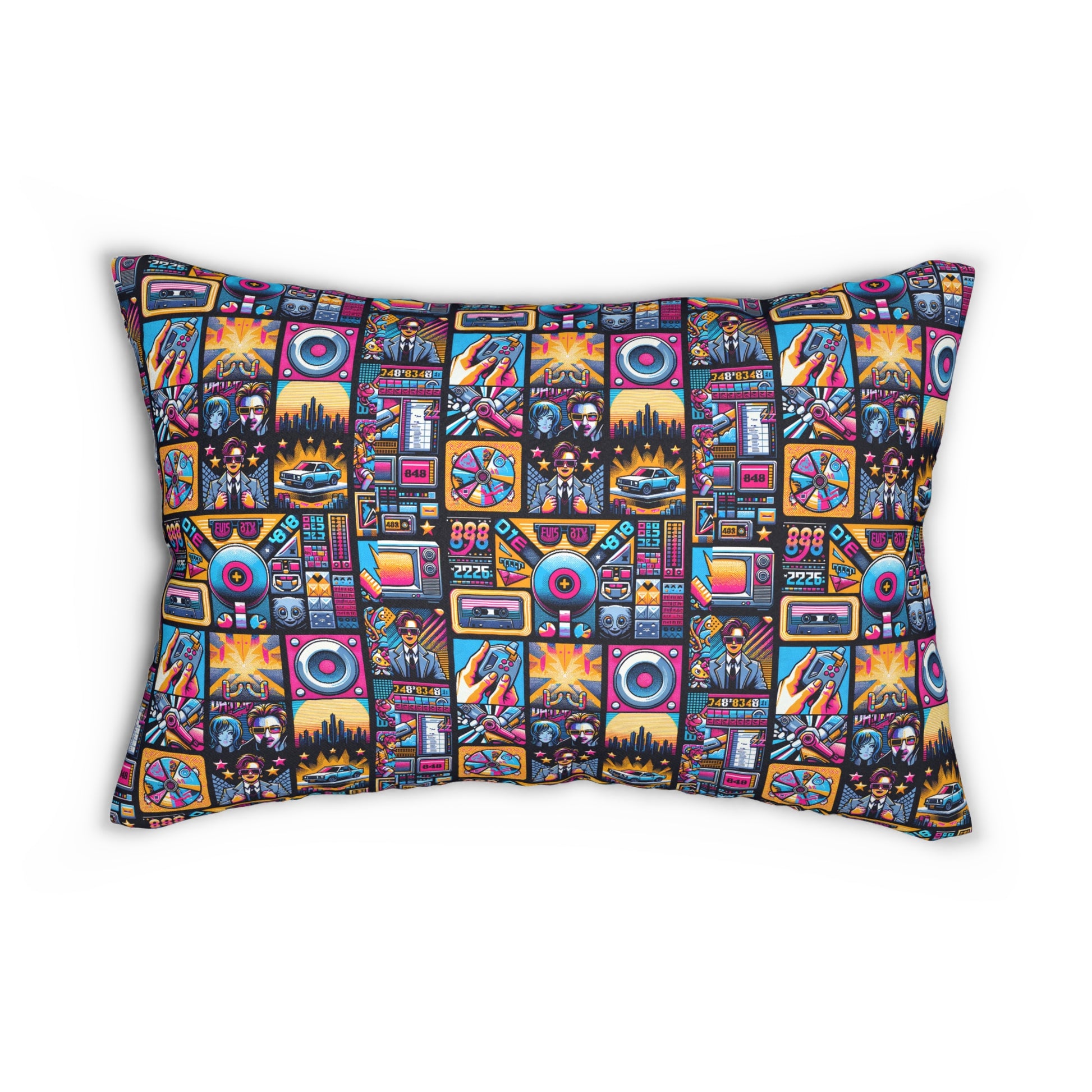 Digital Pop Culture Mashup Maximalist Pop Spun Polyester Lumbar Pillow - 8404 Design-52 B