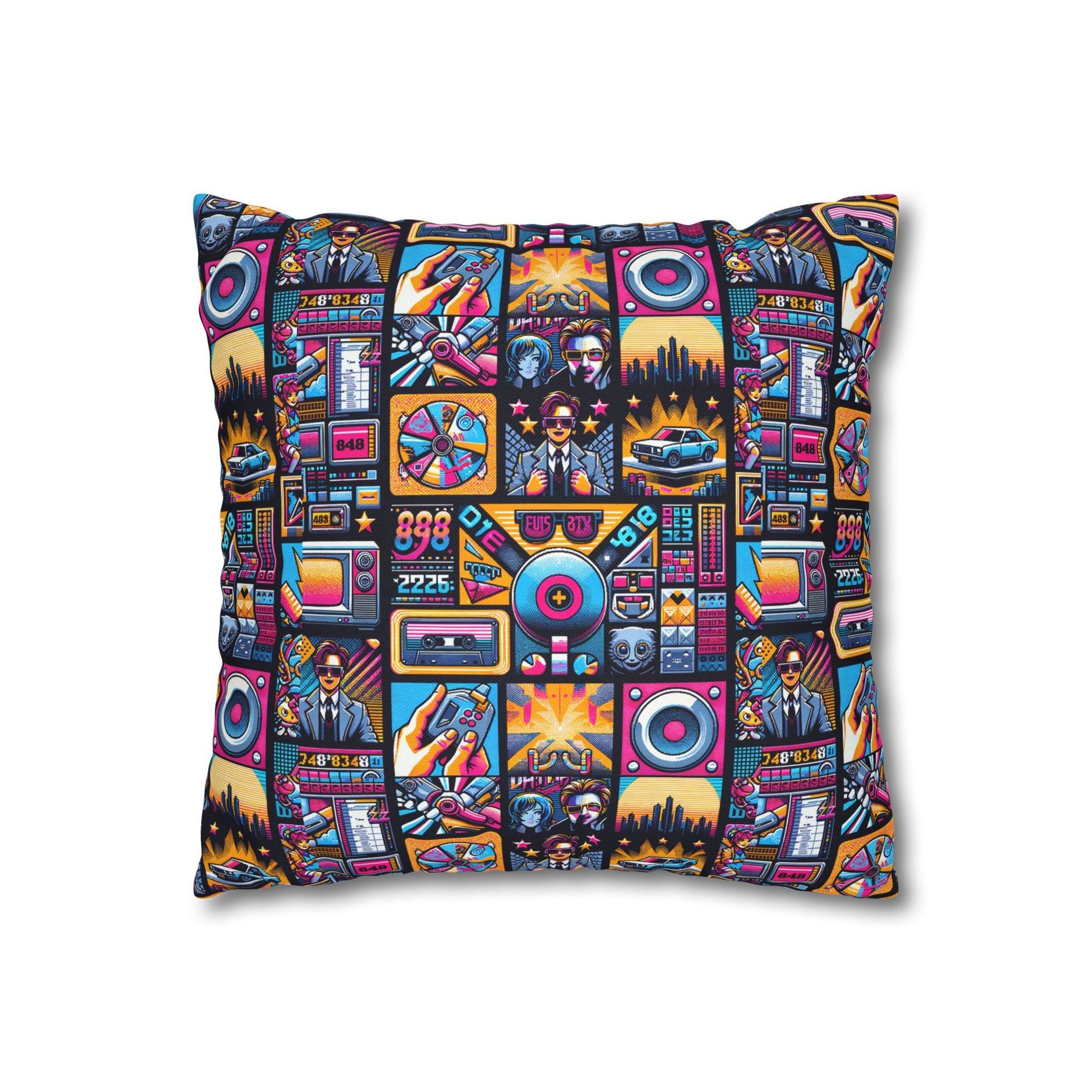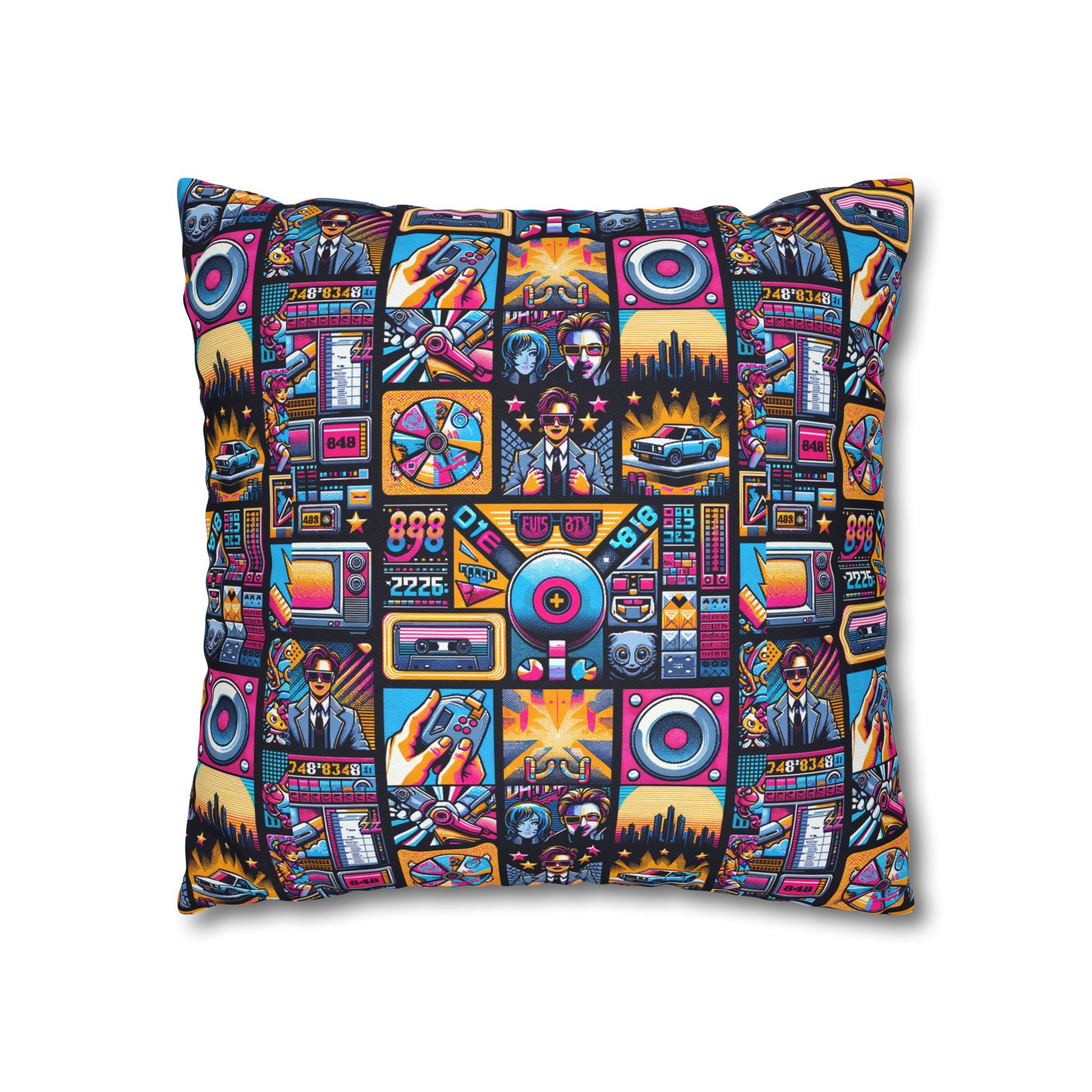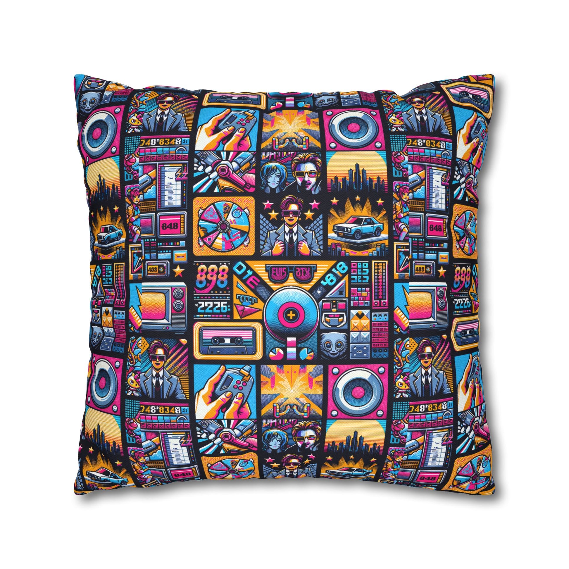 Digital Pop Culture Mashup Maximalist Pop Spun Polyester Square Pillowcase - 8404 Design-52