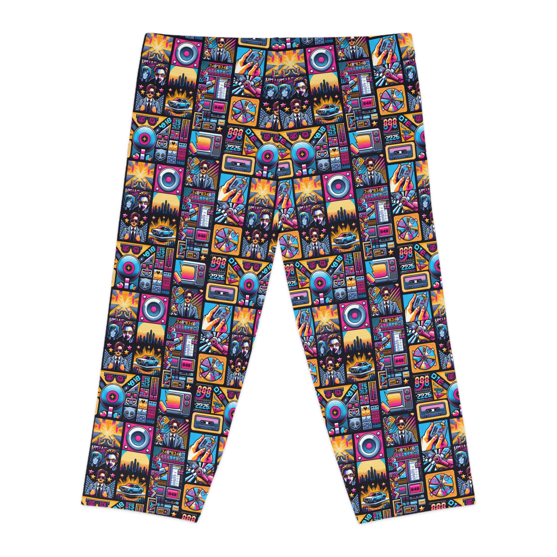Digital Pop Culture Mashup Maximalist Pop Women's Capri Leggings - 8404 Design-52
