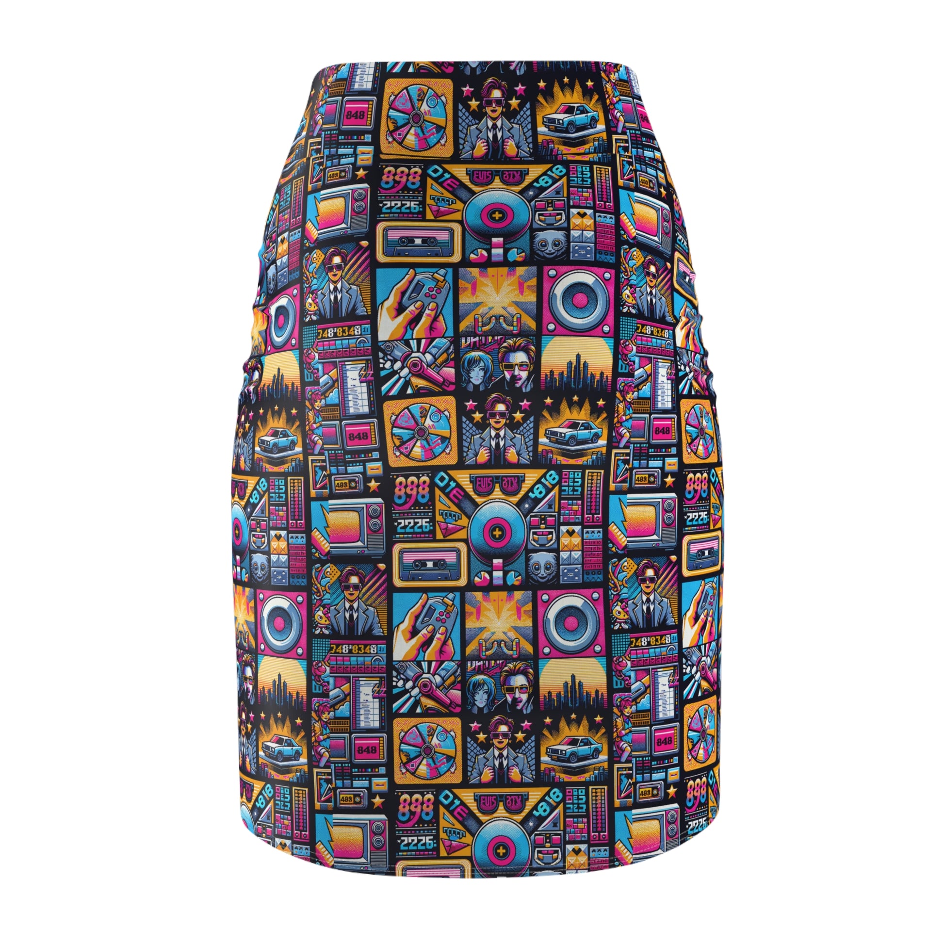 Digital Pop Culture Mashup Maximalist Pop Women's Pencil Skirt - 8404 Design-52
