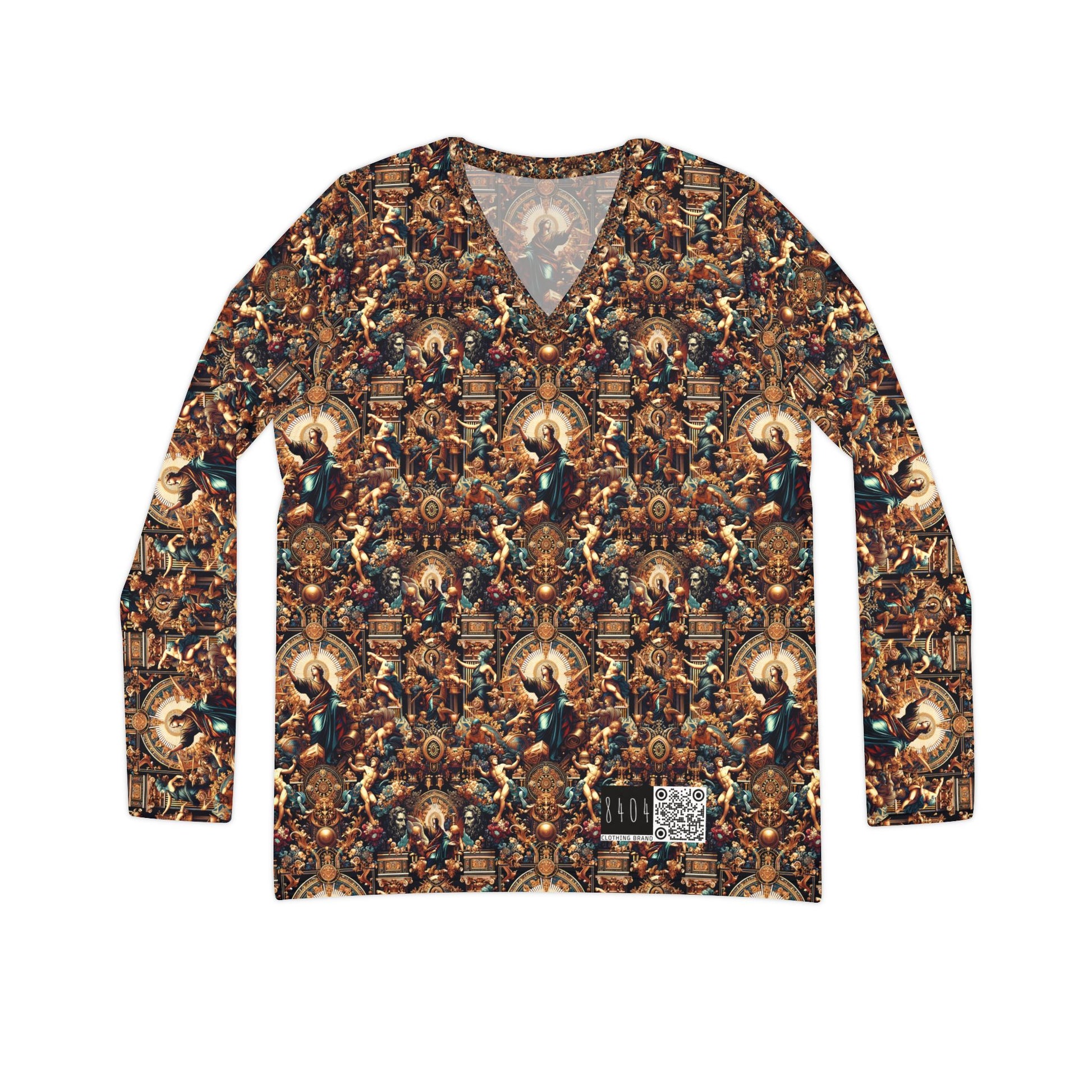 Digital Renaissance Luxurious Streetwear Inspired By Classical Art With a Modern Twist Women's Long Sleeve V-Neck Shirt - 8404 Design-64