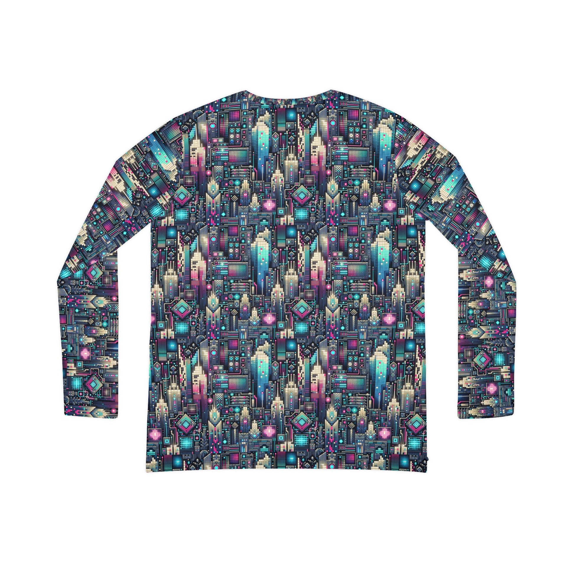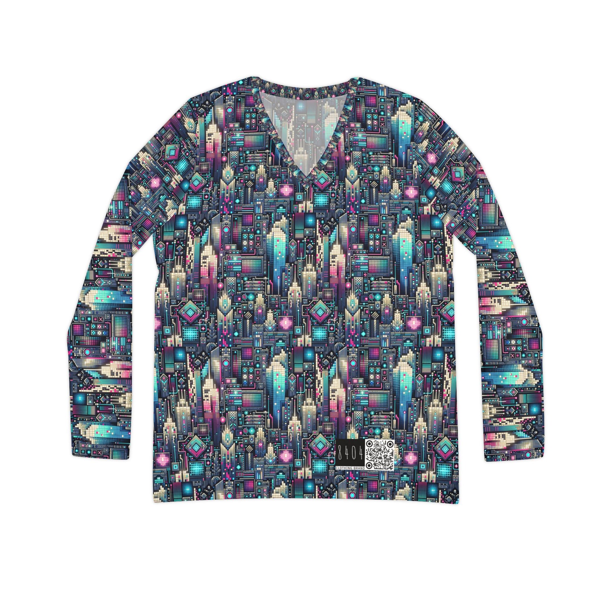 Digital Renaissance Tech-Forward Maximalism Women's Long Sleeve V-Neck Shirt - 8404 Design-56