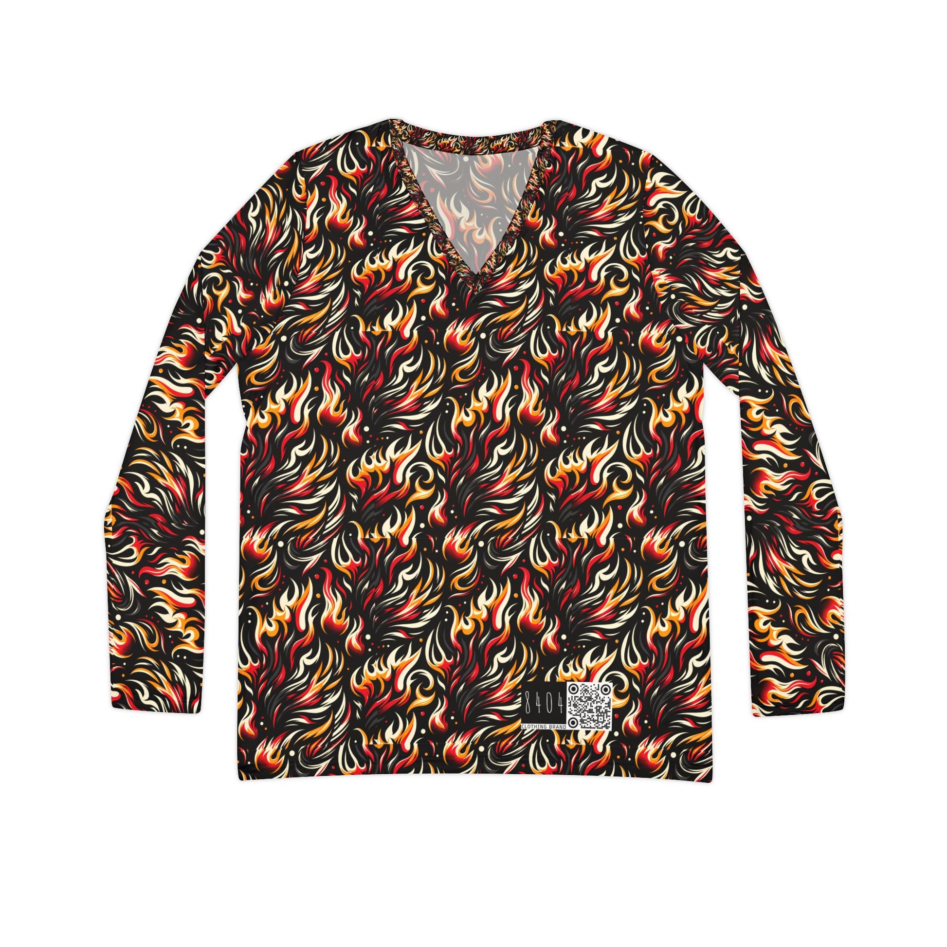 Fire & Flames Bold Streetwear Statement Women's Long Sleeve V-Neck Shirt - 8404 Design-60