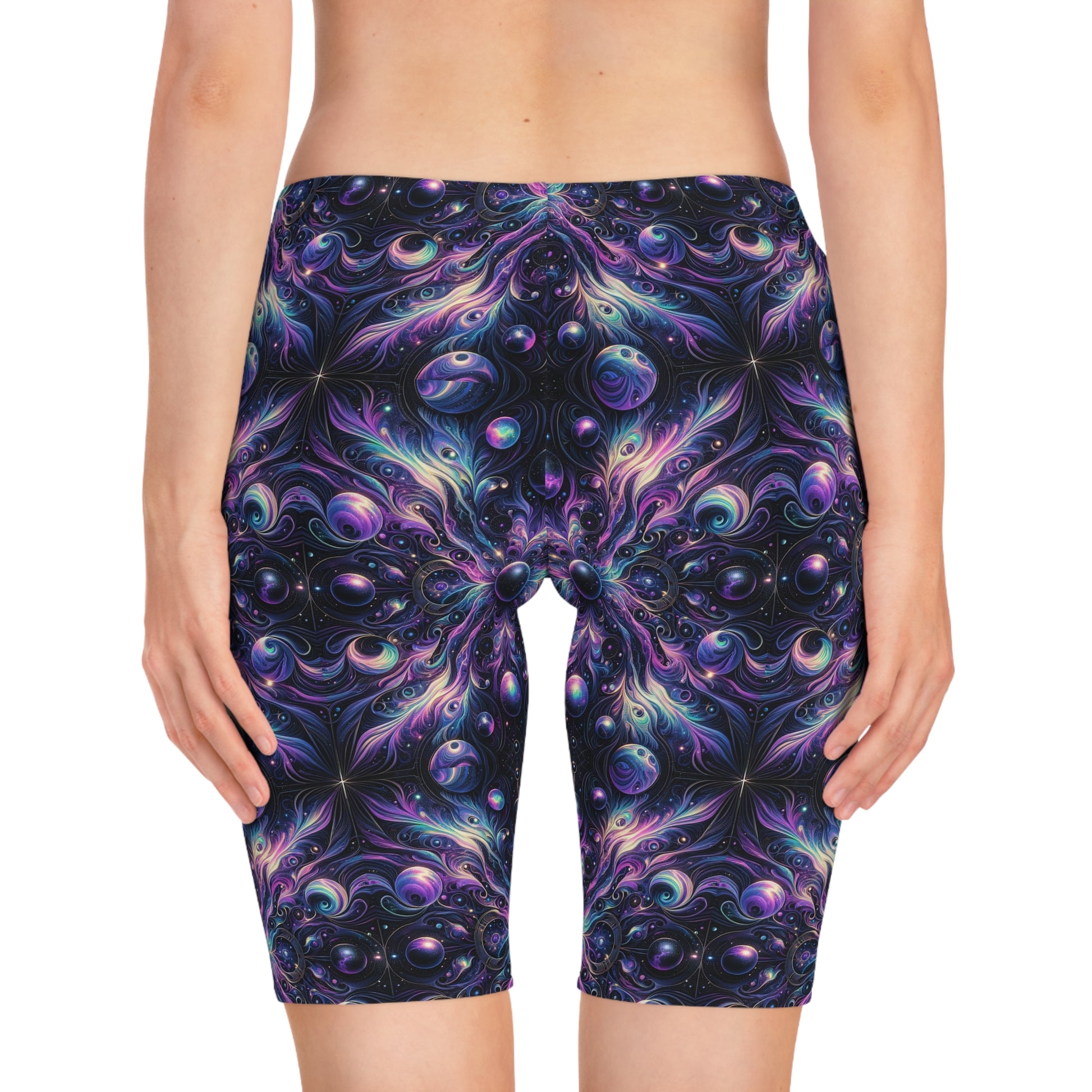 Galactic Hues Tech-Forward Cosmic Fusion Women's Bike Shorts - 8404 Design-41