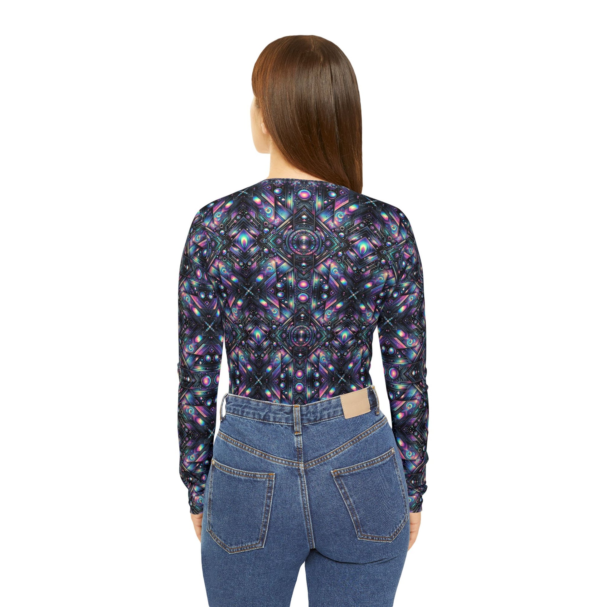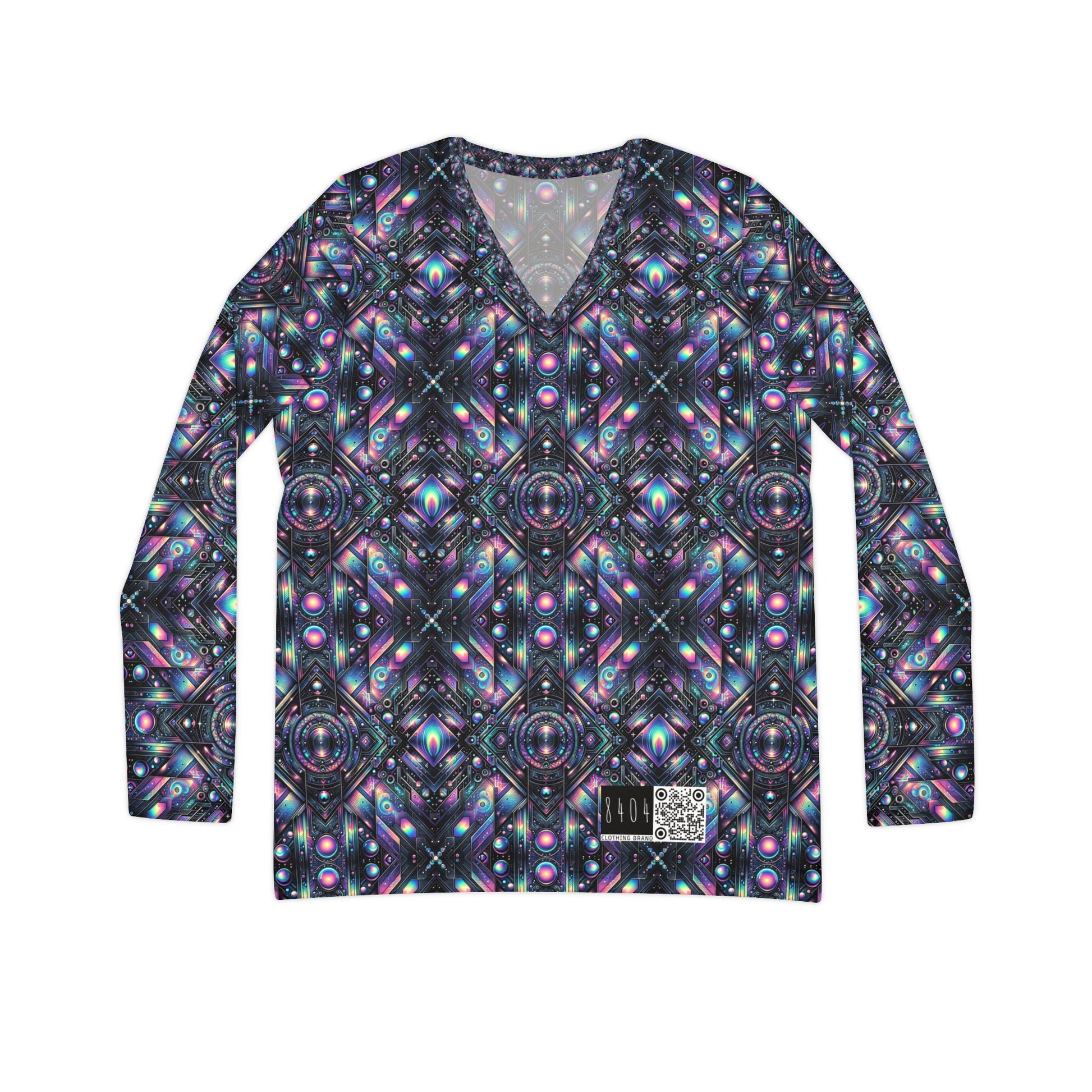 Galactic Hues Tech-Forward Cosmic Fusion Women's Long Sleeve V-Neck Shirt - 8404 Design-58