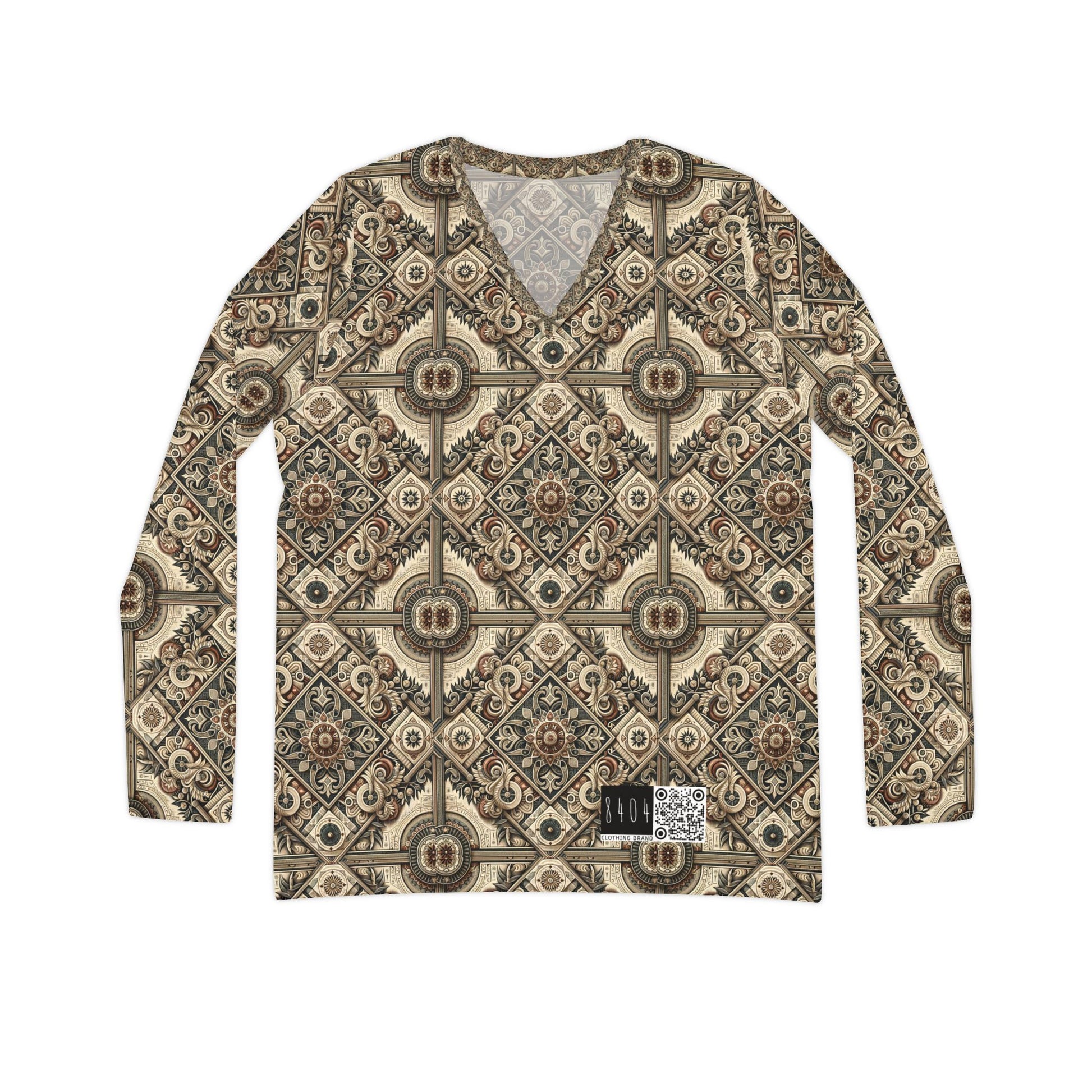 Graphic Workwear Capsule Artisanal Workwear Fusion Women's Long Sleeve V-Neck Shirt - 8404 Design-61