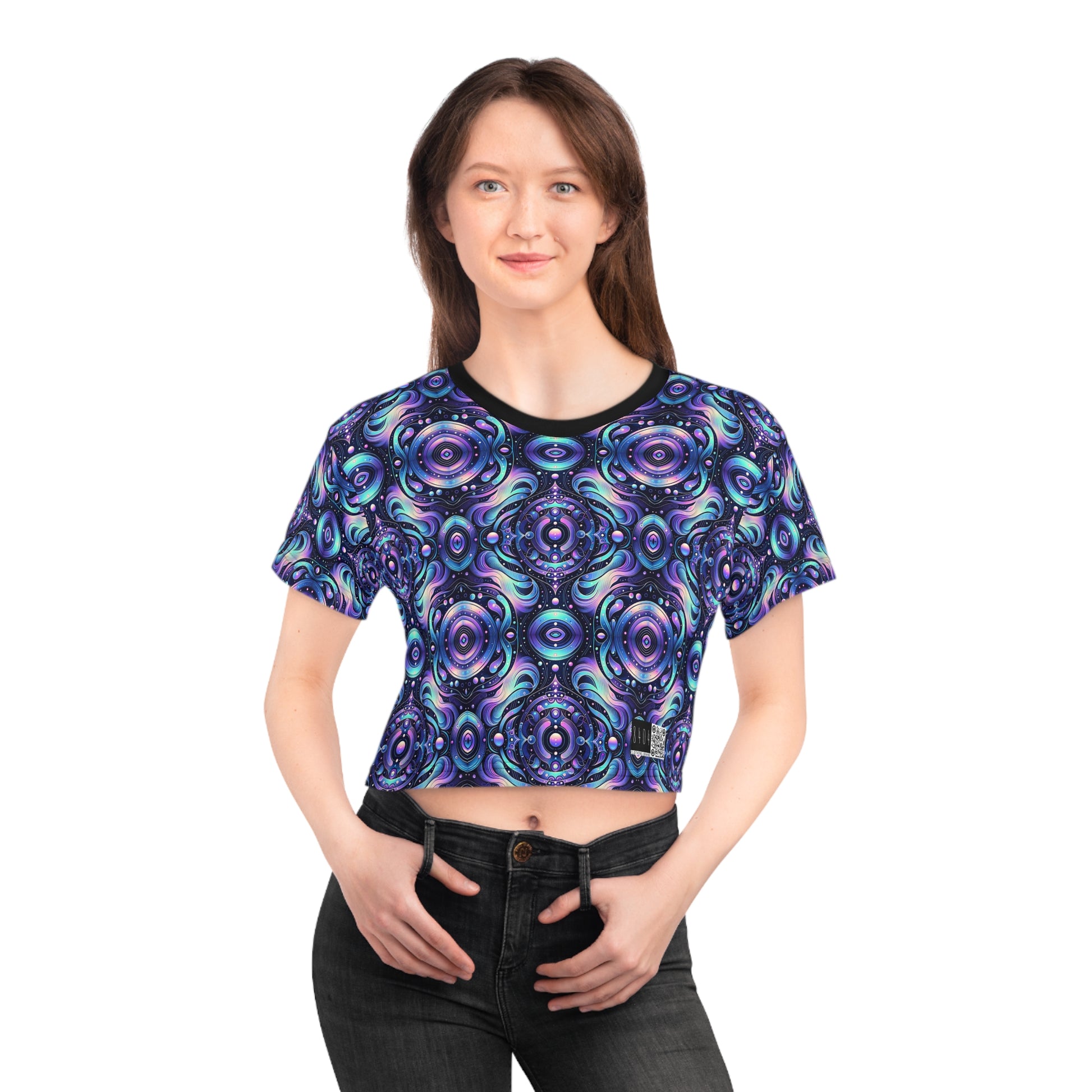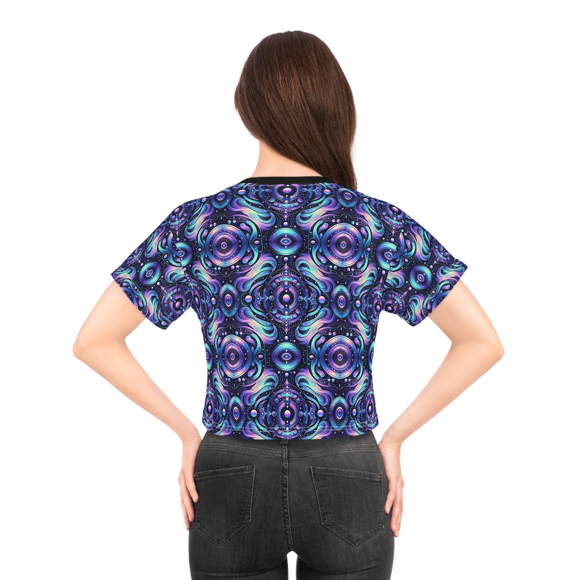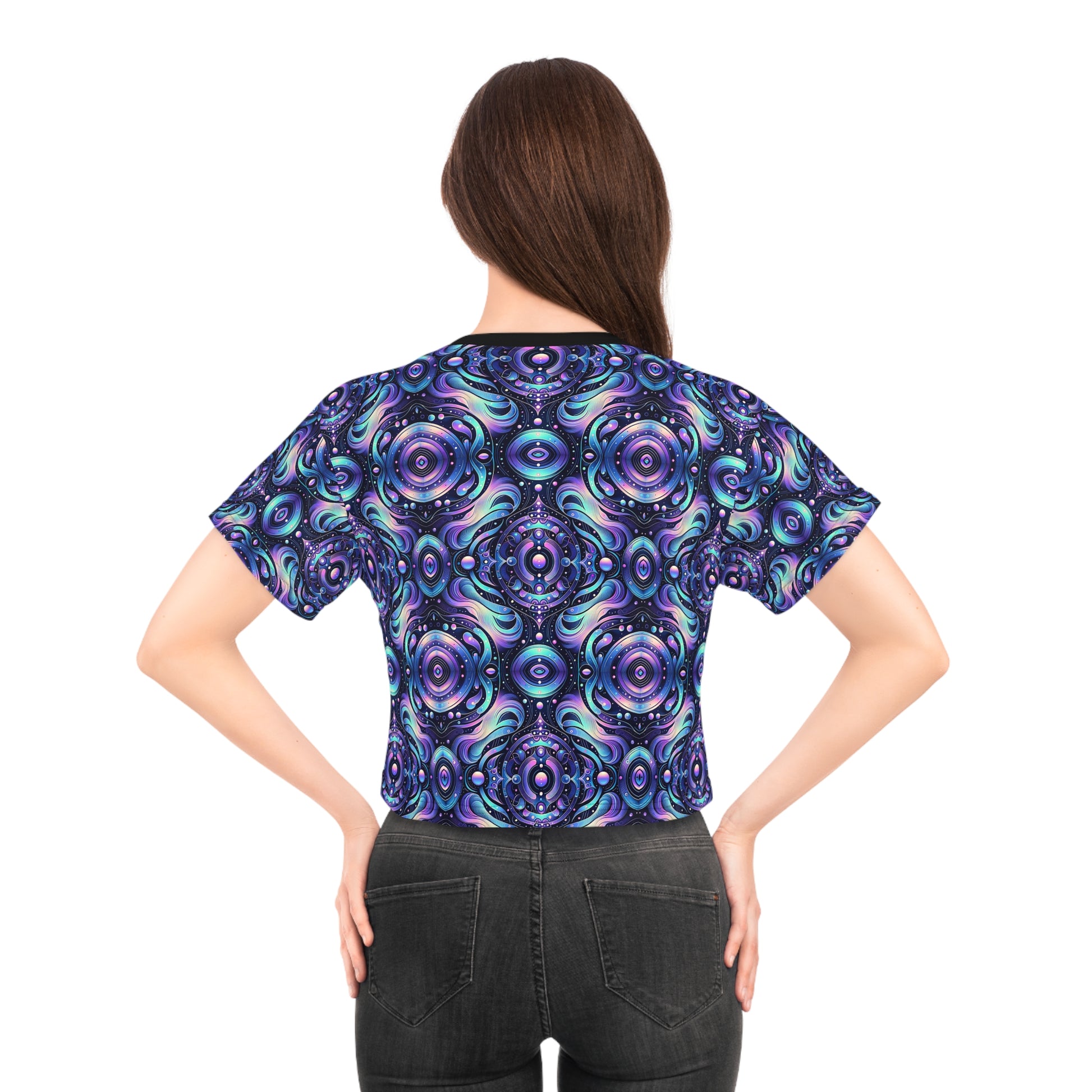 Iridescent Tech Fusion Tech-Forward Streetwear Crop Tee - 8404 Design-62