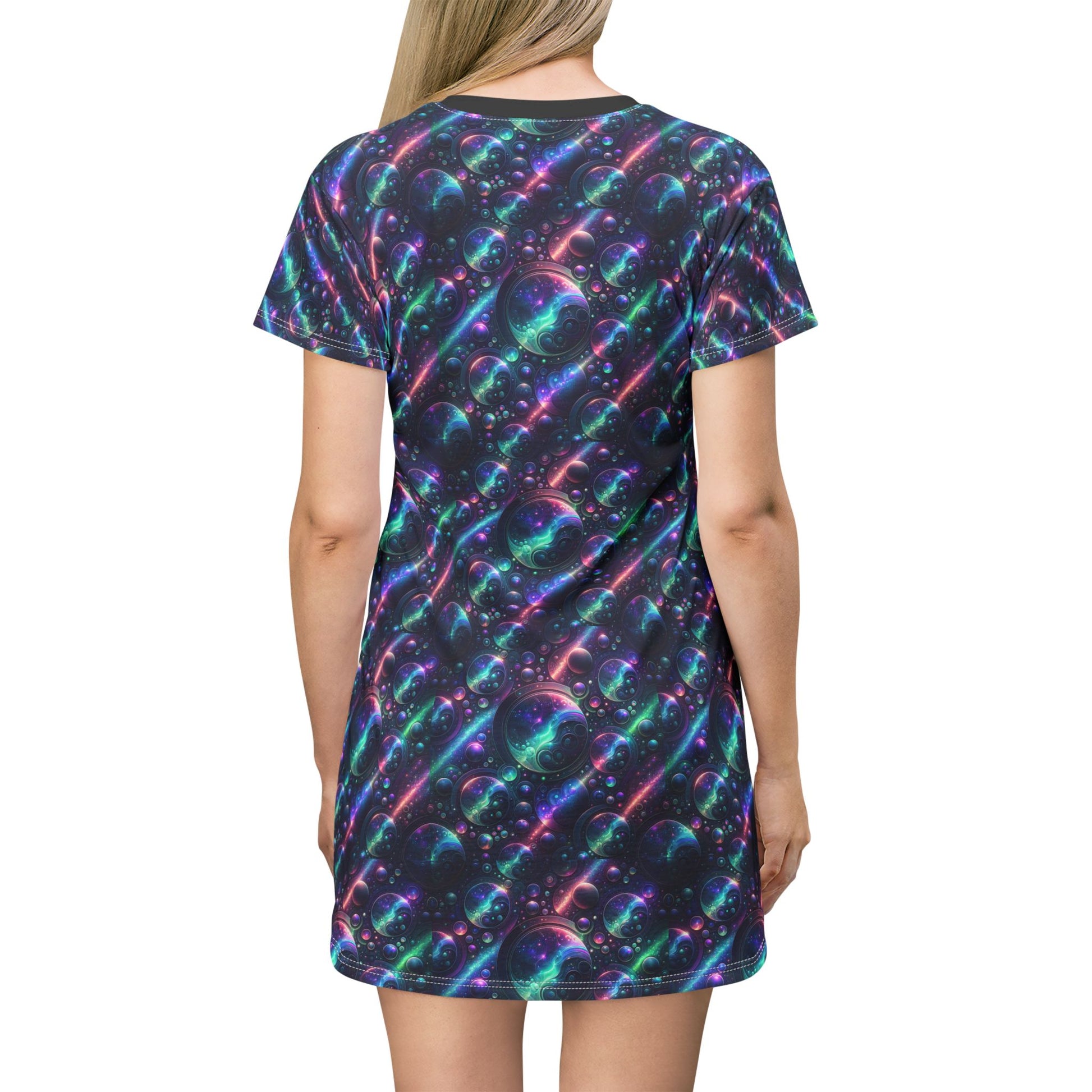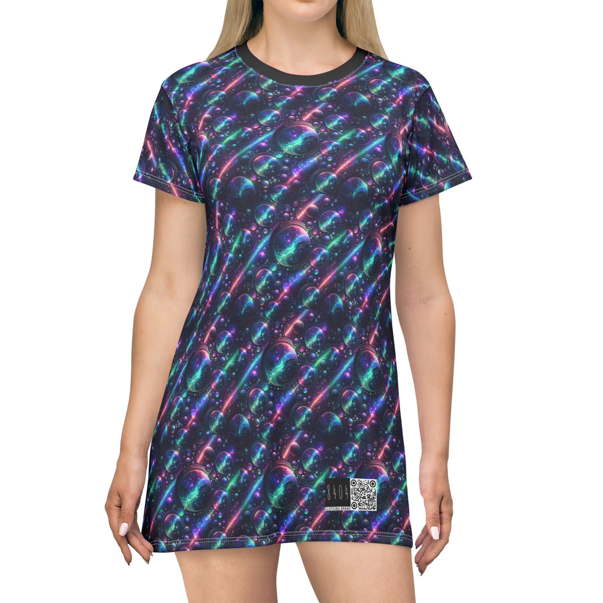 Iridescent Tech Fusion Tech-Forward Streetwear T-Shirt Dress - 8404 Design-51