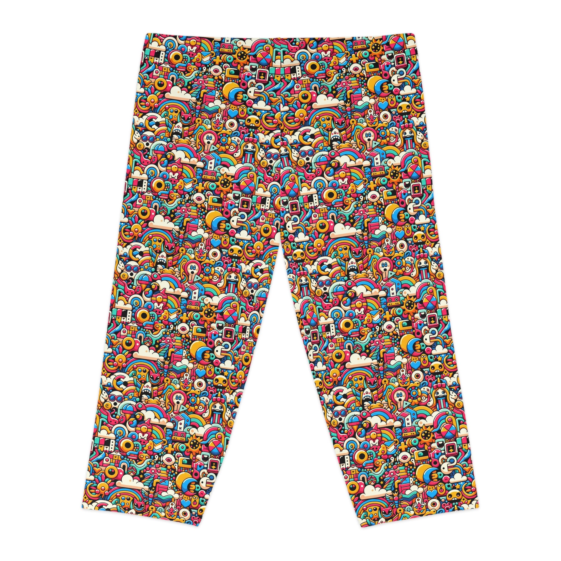 Neon Pop Playful Pop Culture Mashup Women's Capri Leggings - 8404 Design-62