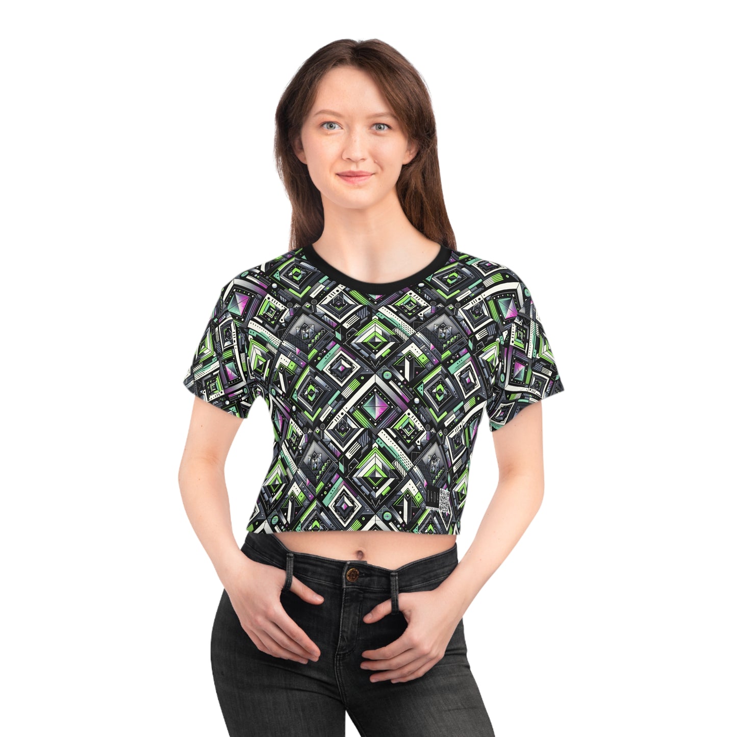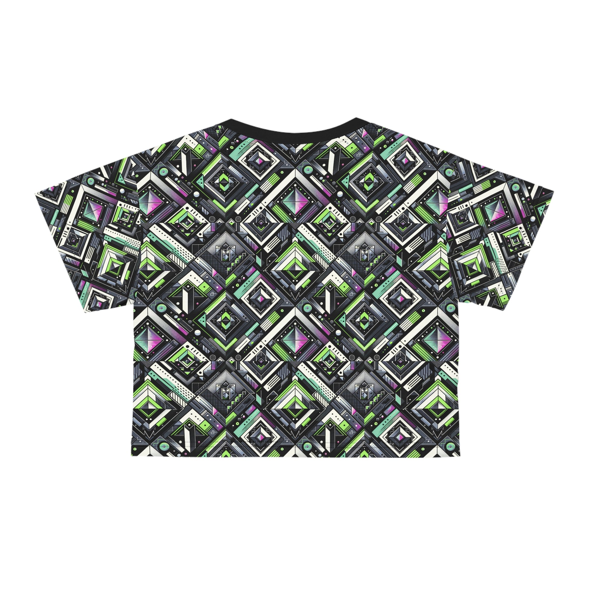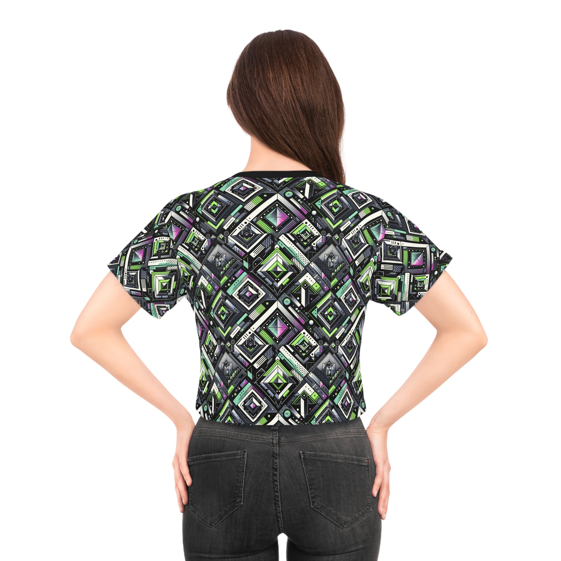 Retro Futurism Graphics Tech-Forward Streetwear Crop Tee - 8404 Design-48