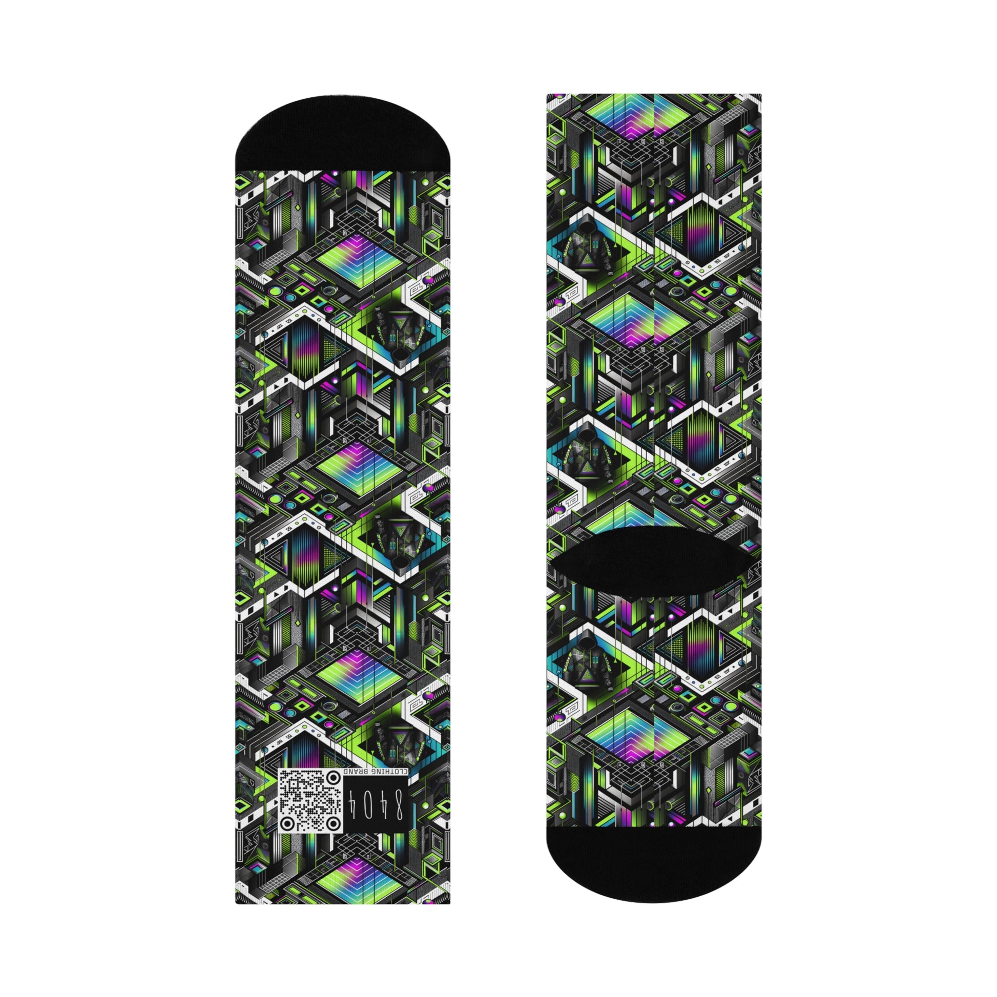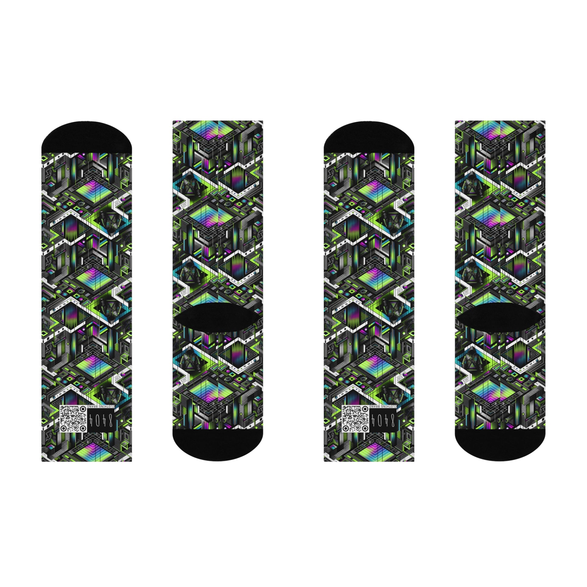 Retro Futurism Graphics Tech-Forward Streetwear Cushioned Crew Socks - 8404 Design-52