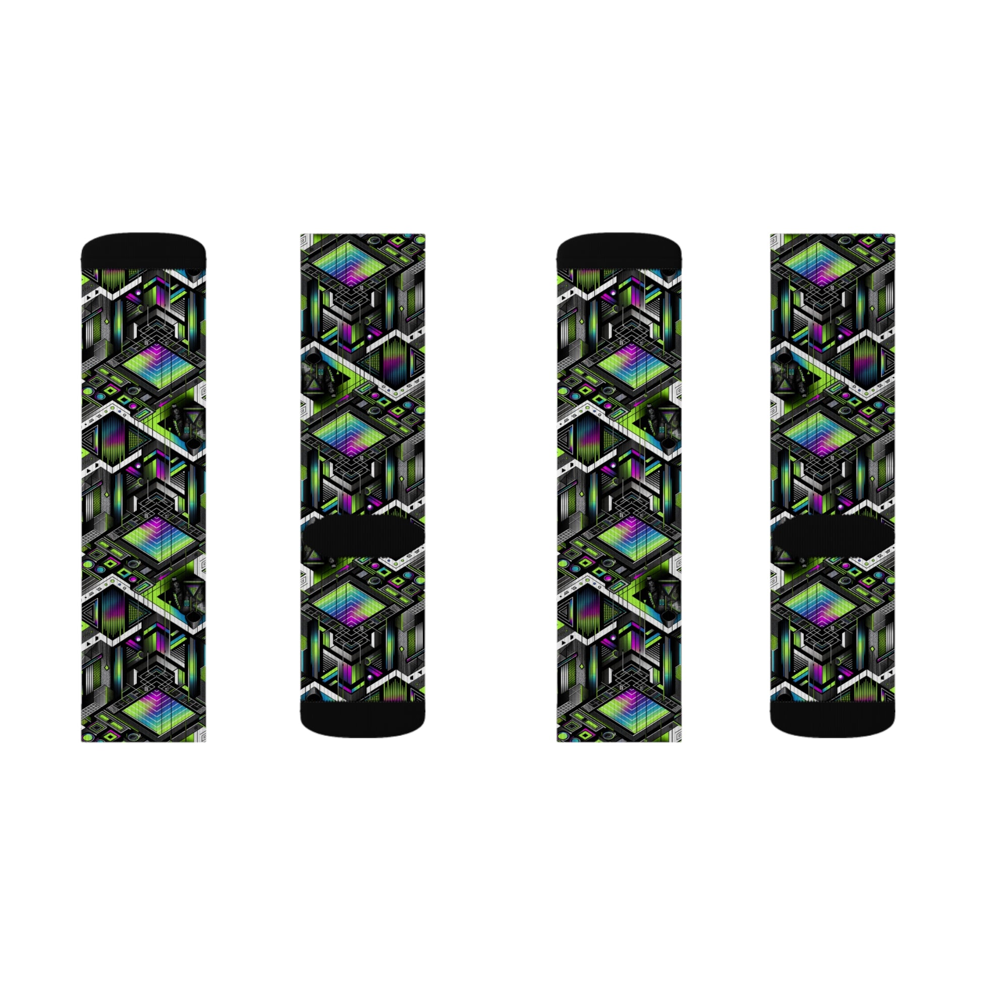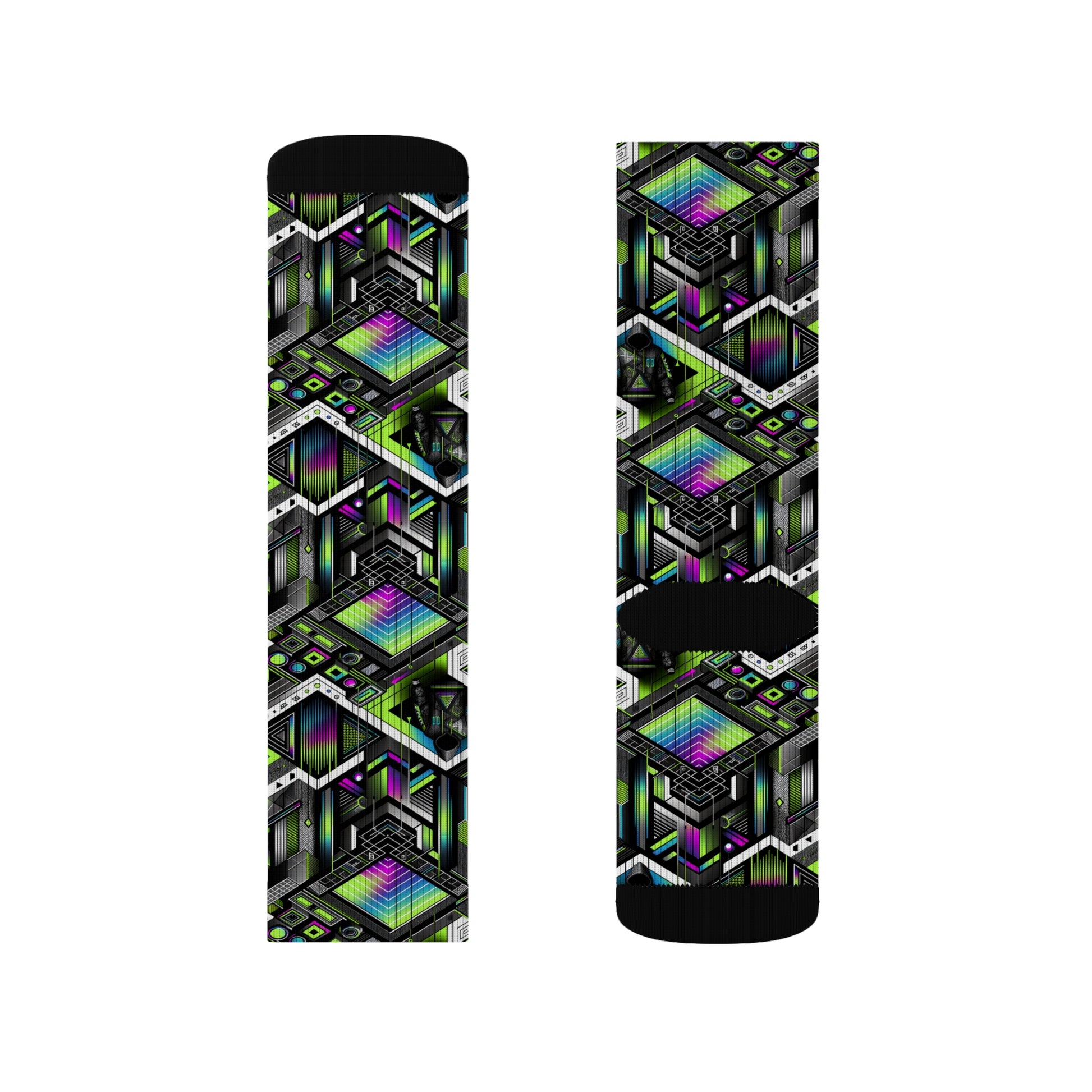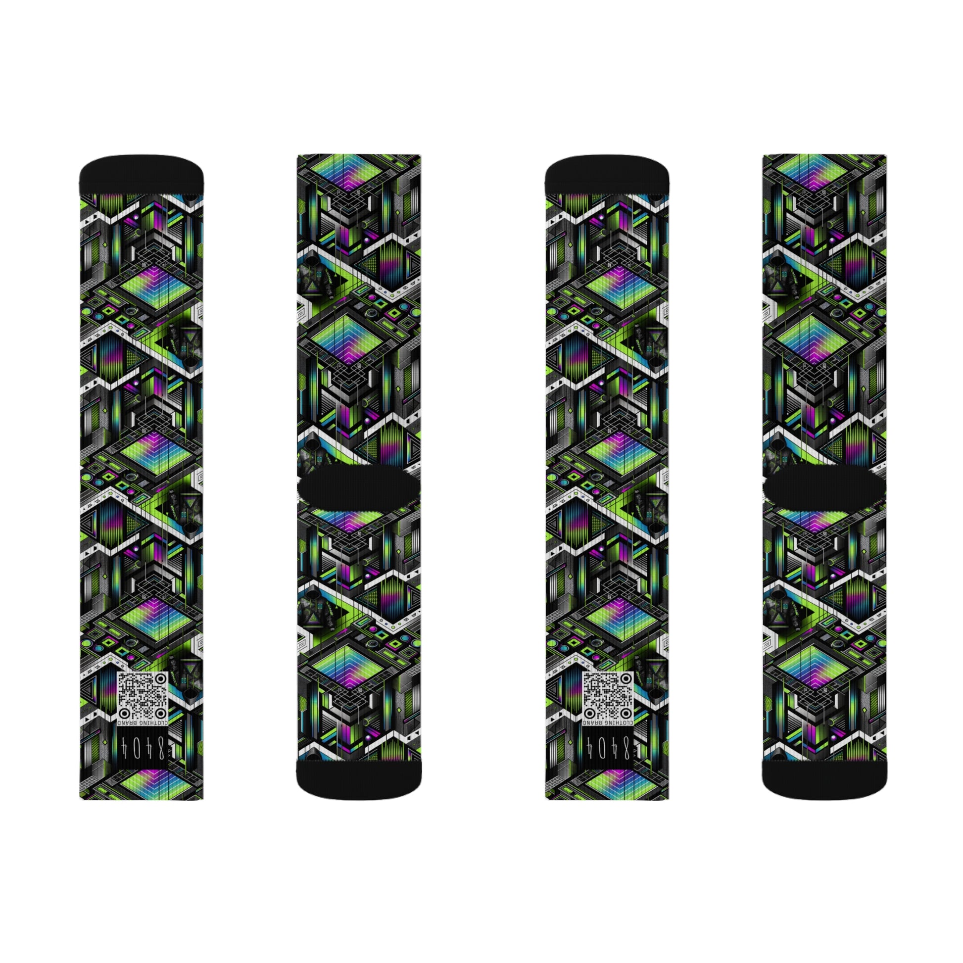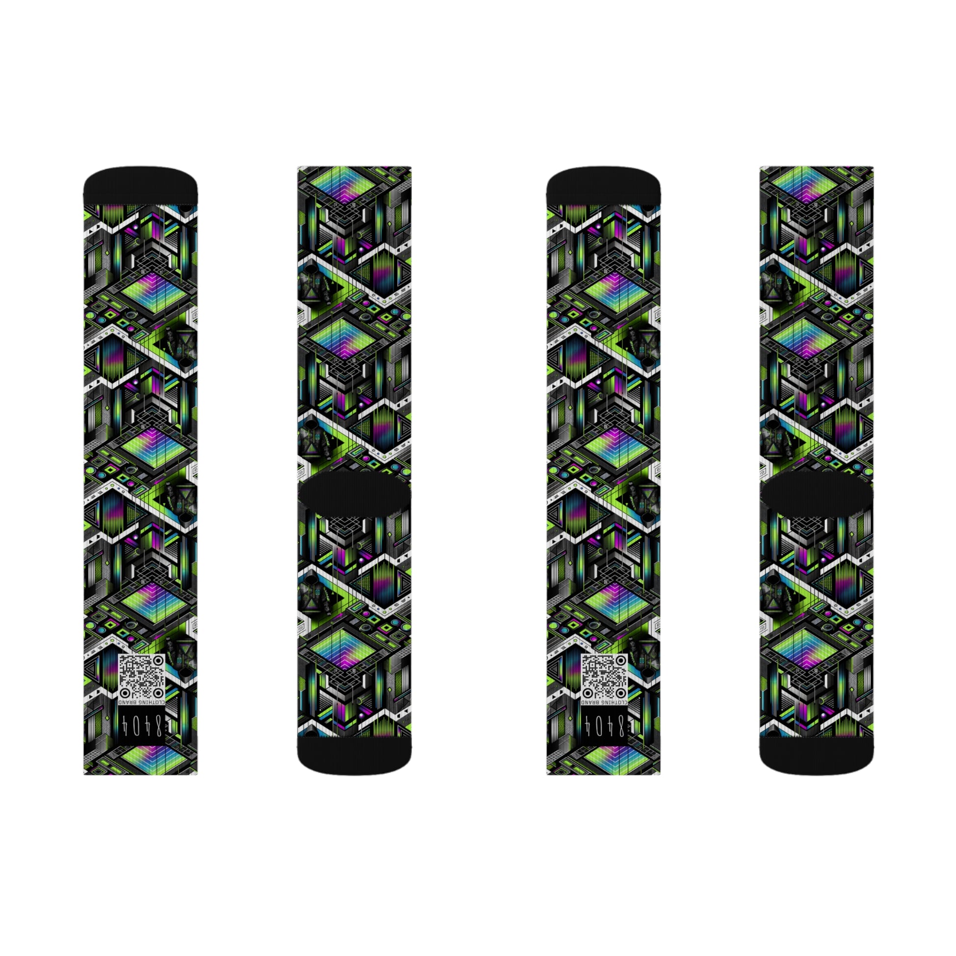 Retro Futurism Graphics Tech-Forward Streetwear Sublimation Socks - 8404 Design-52