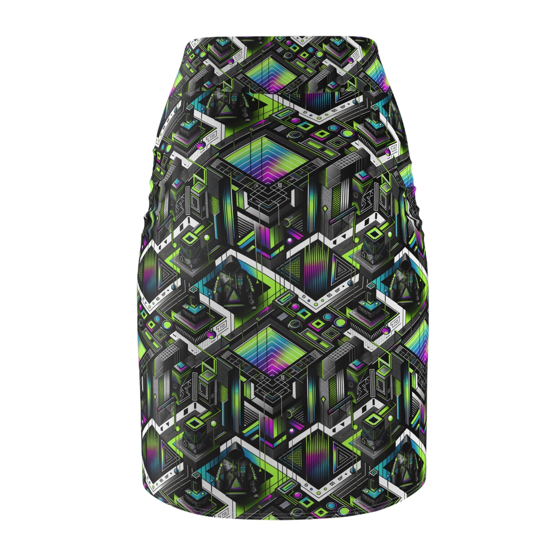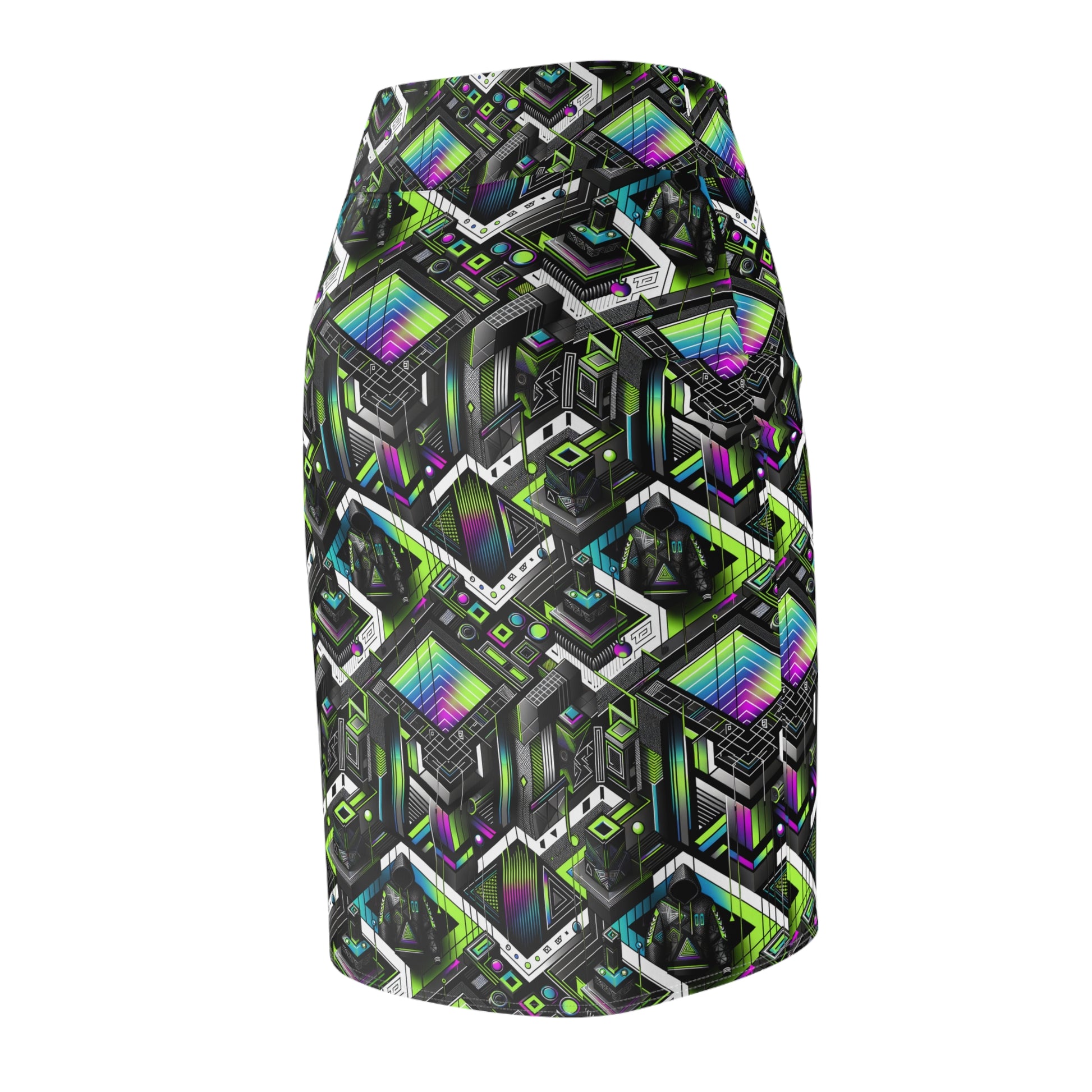 Retro Futurism Graphics Tech-Forward Streetwear Women's Pencil Skirt - 8404 Design-52