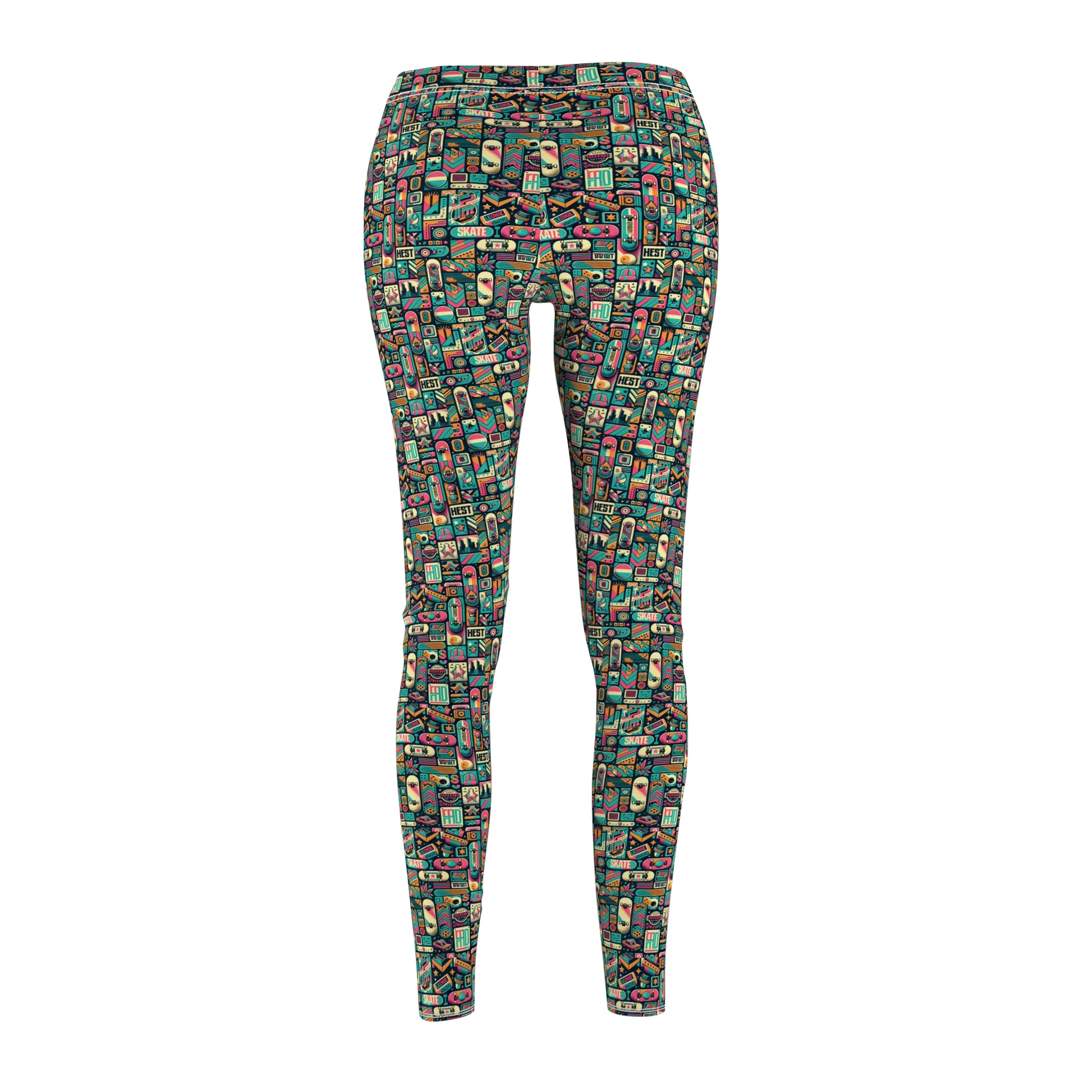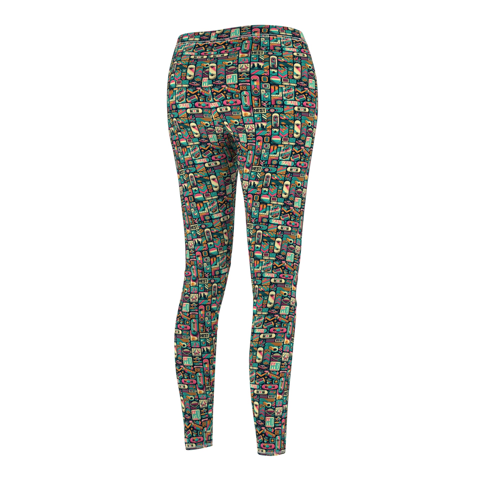 Skate Culture Revival Urban Retro Cool Women's Cut & Sew Casual Leggings - 8404 Design-61