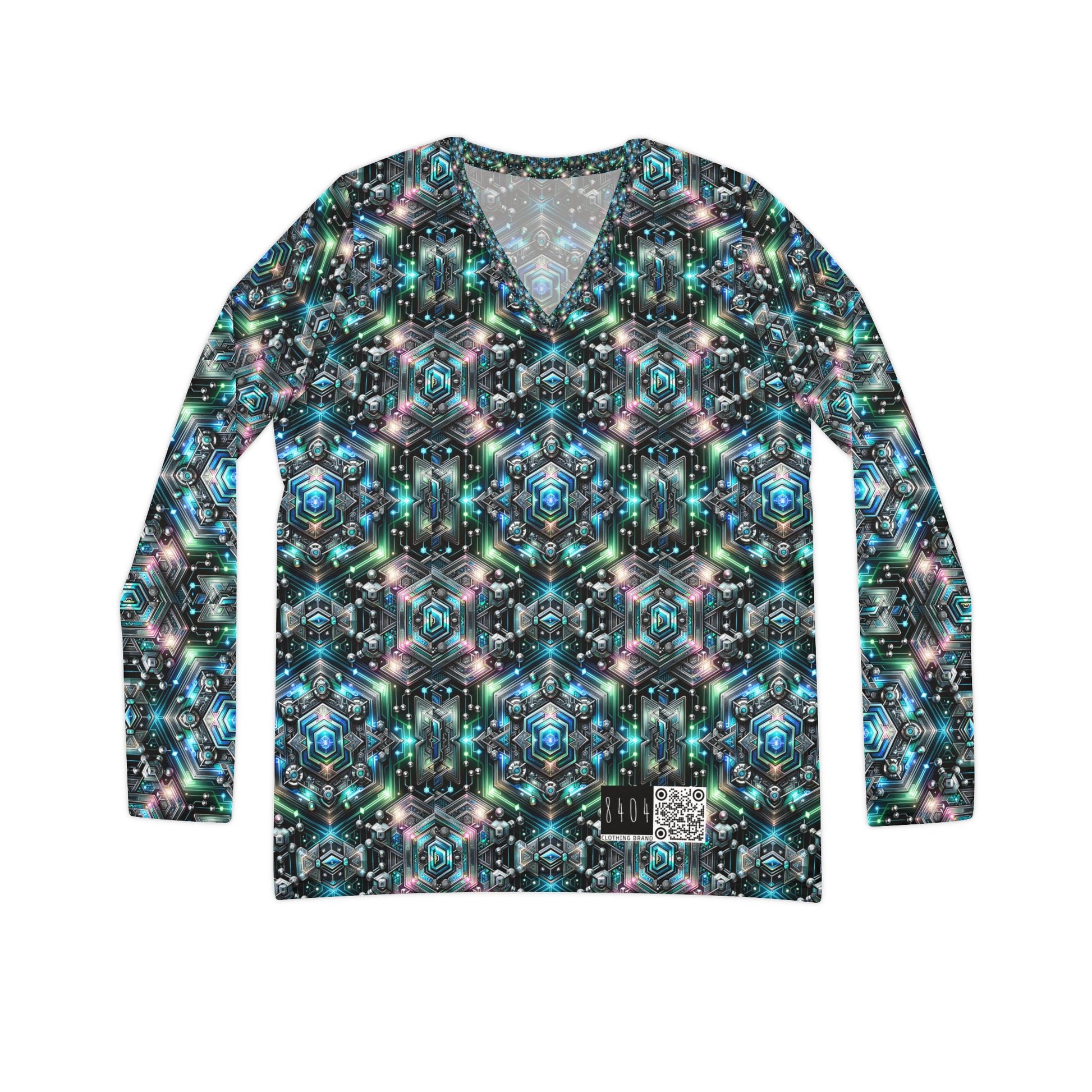 Tech-Infused Futurism Futuristic Tech Women's Long Sleeve V-Neck Shirt - 8404 Design-63