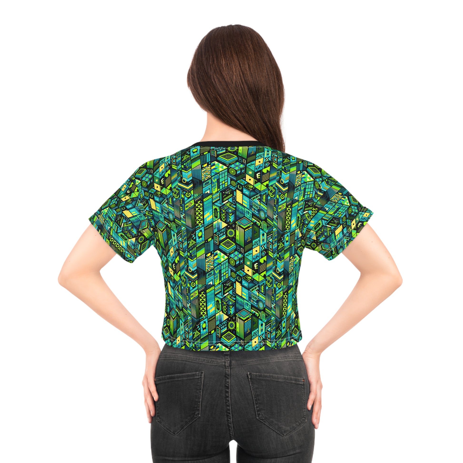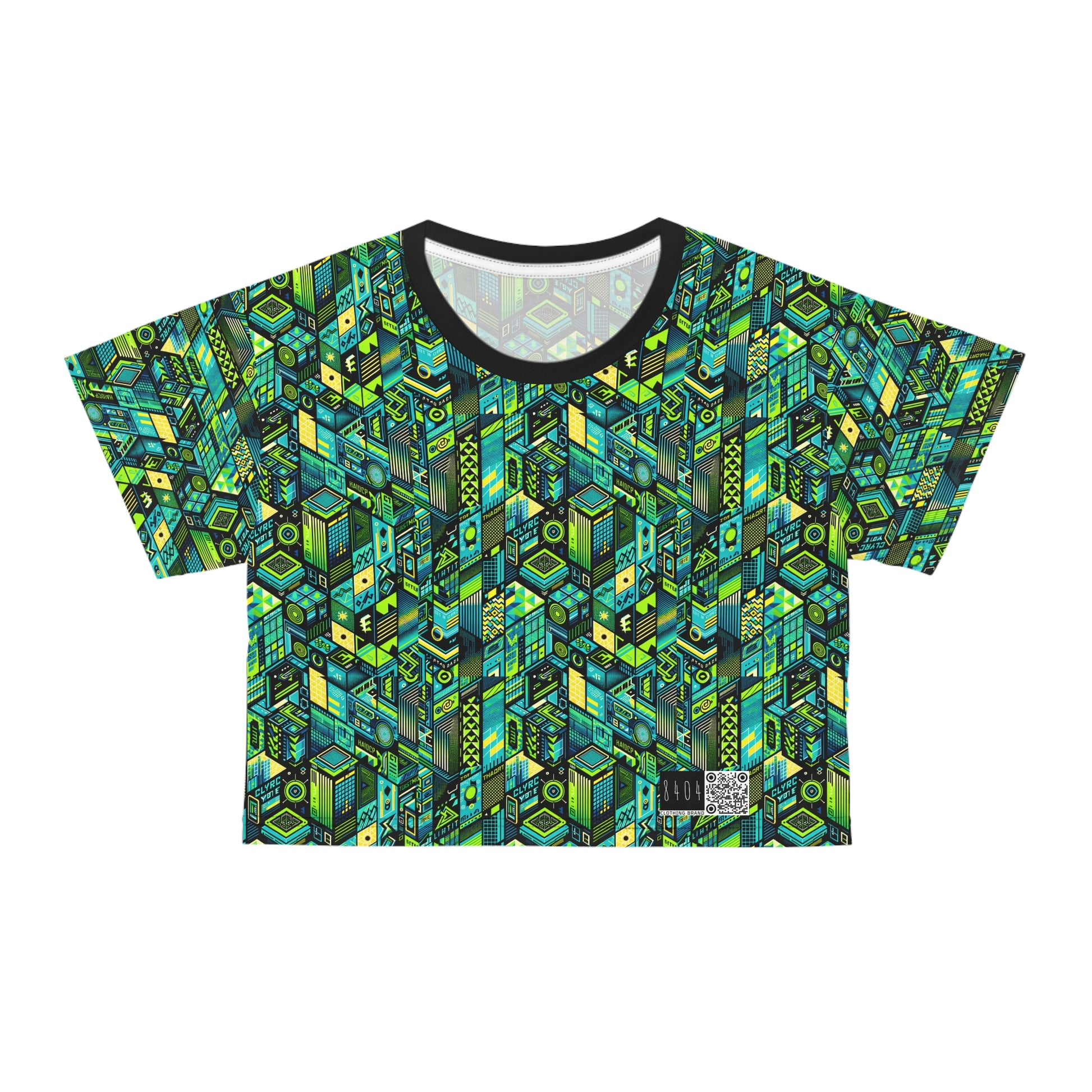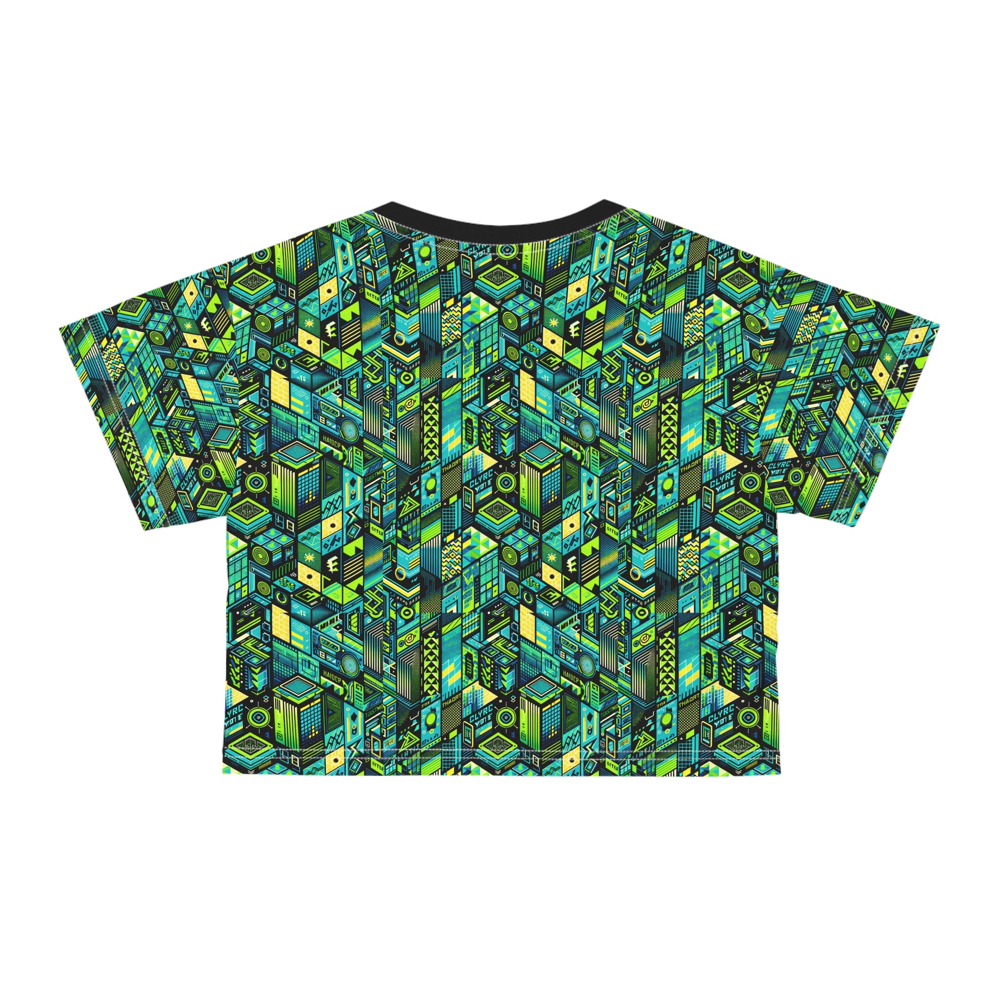 Tech-Infused Neon Tech-Forward Streetwear Crop Tee - 8404 Design-61