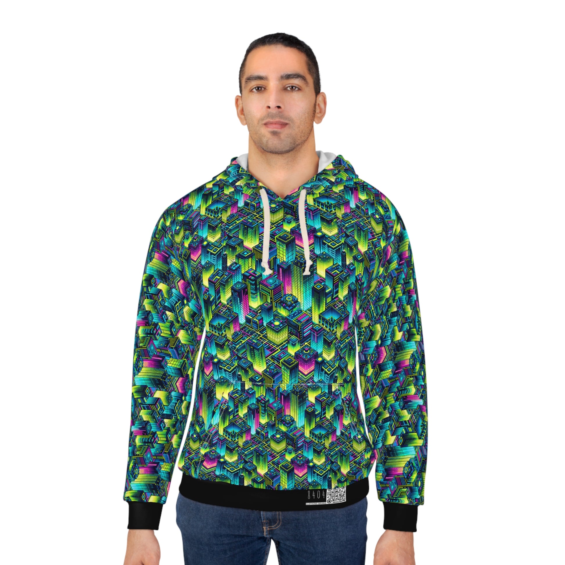 Tech-Infused Neon Tech-Forward Streetwear Pullover Hoodie - 8404 Design-65