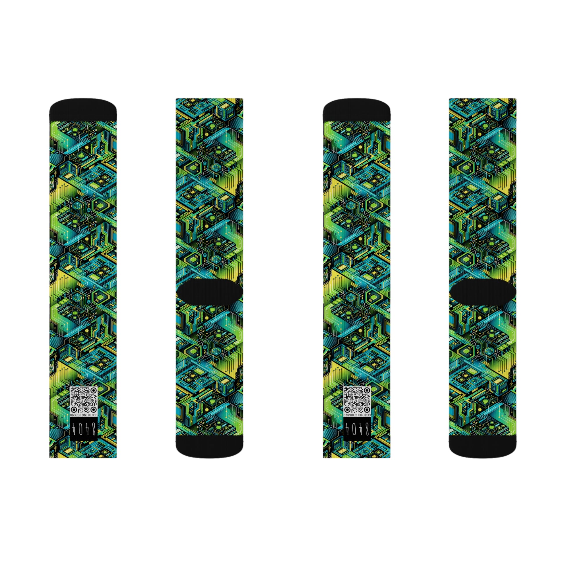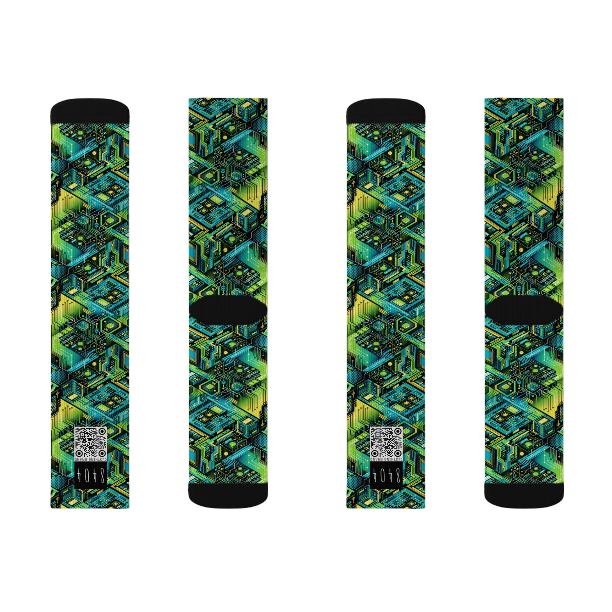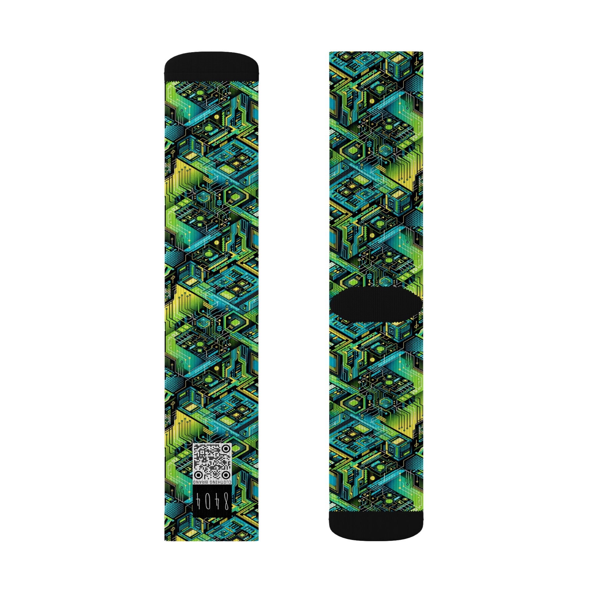 Tech-Infused Neon Tech-Forward Streetwear Sublimation Socks - 8404 Design-38