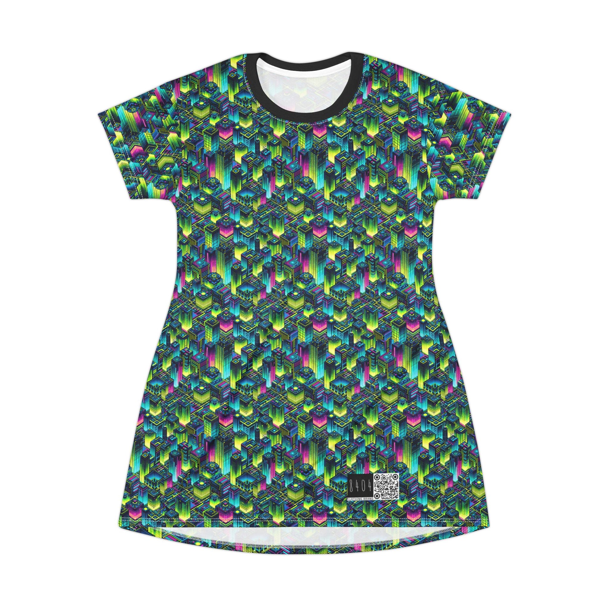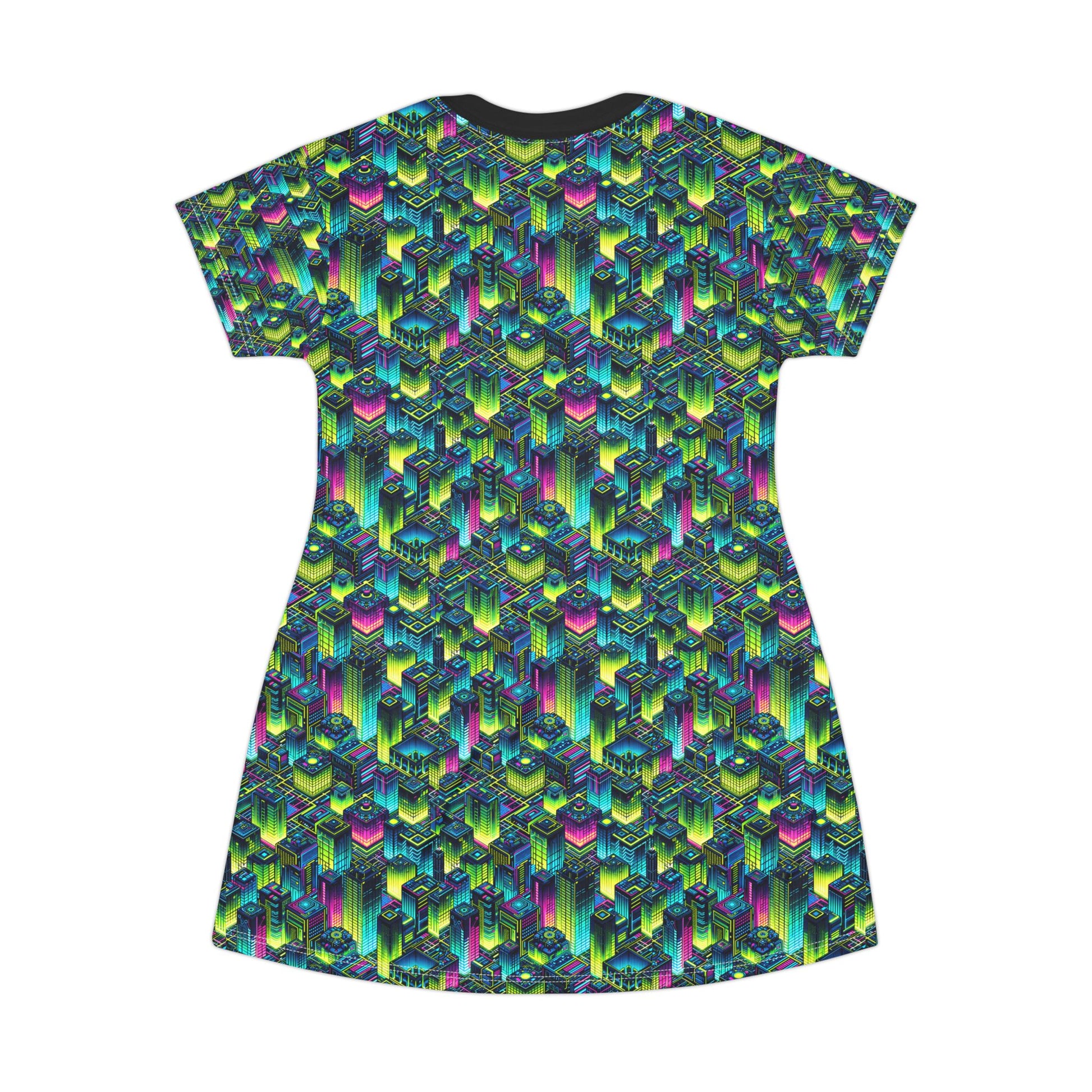 Tech-Infused Neon Tech-Forward Streetwear T-Shirt Dress - 8404 Design-65
