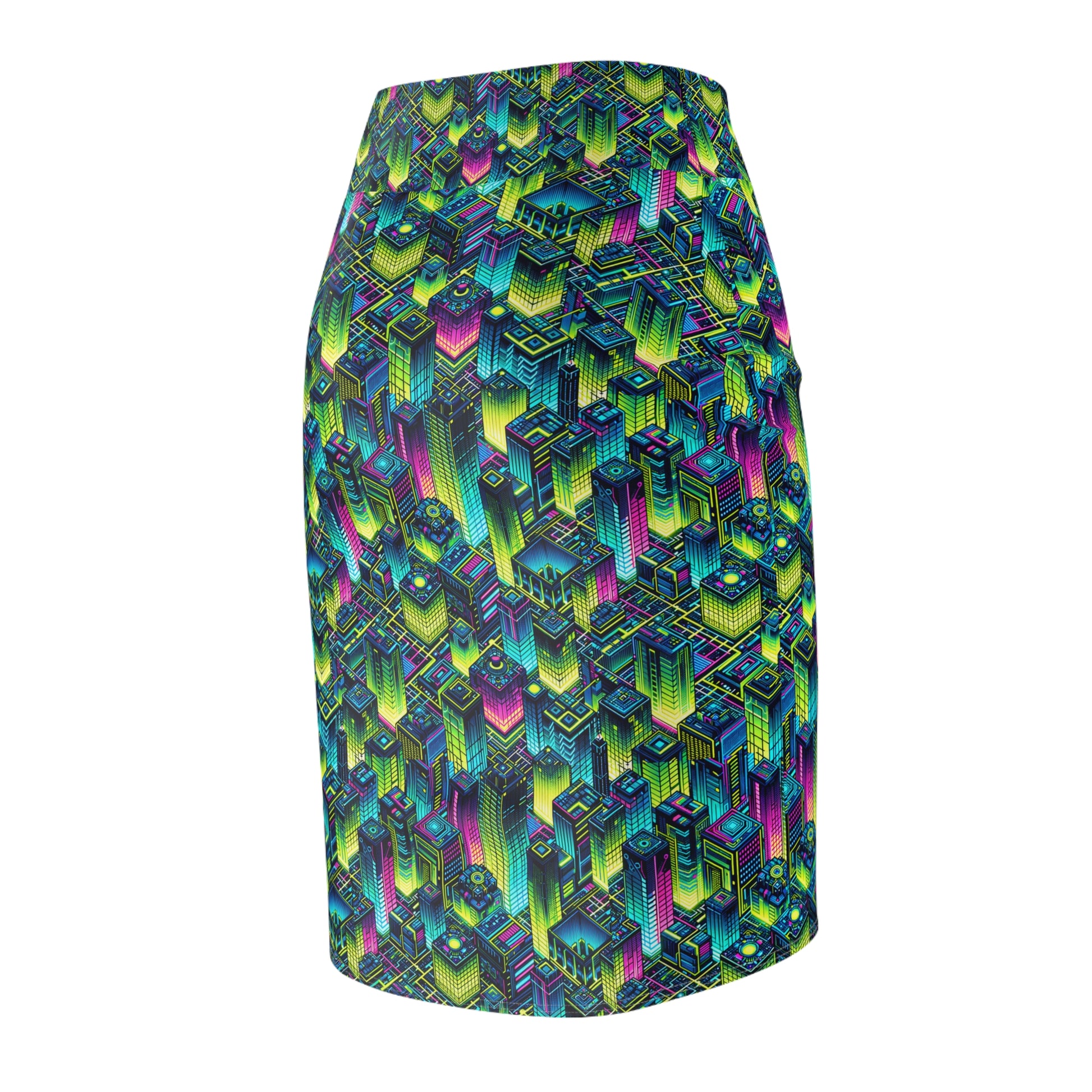 Tech-Infused Neon Tech-Forward Streetwear Women's Pencil Skirt - 8404 Design-65