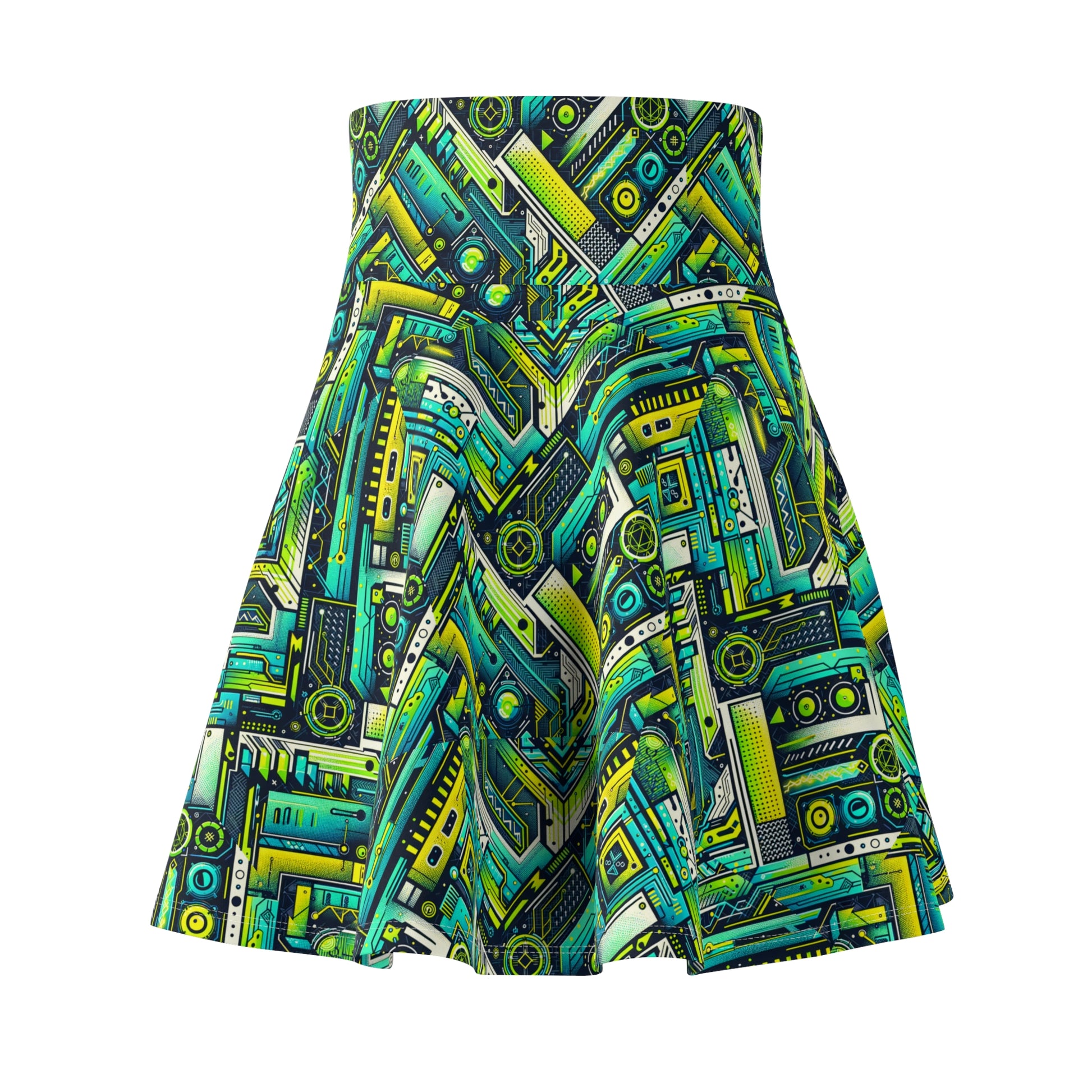 Tech-Infused Neon Tech-Forward Streetwear Women's Skater Skirt - 8404 Design-52