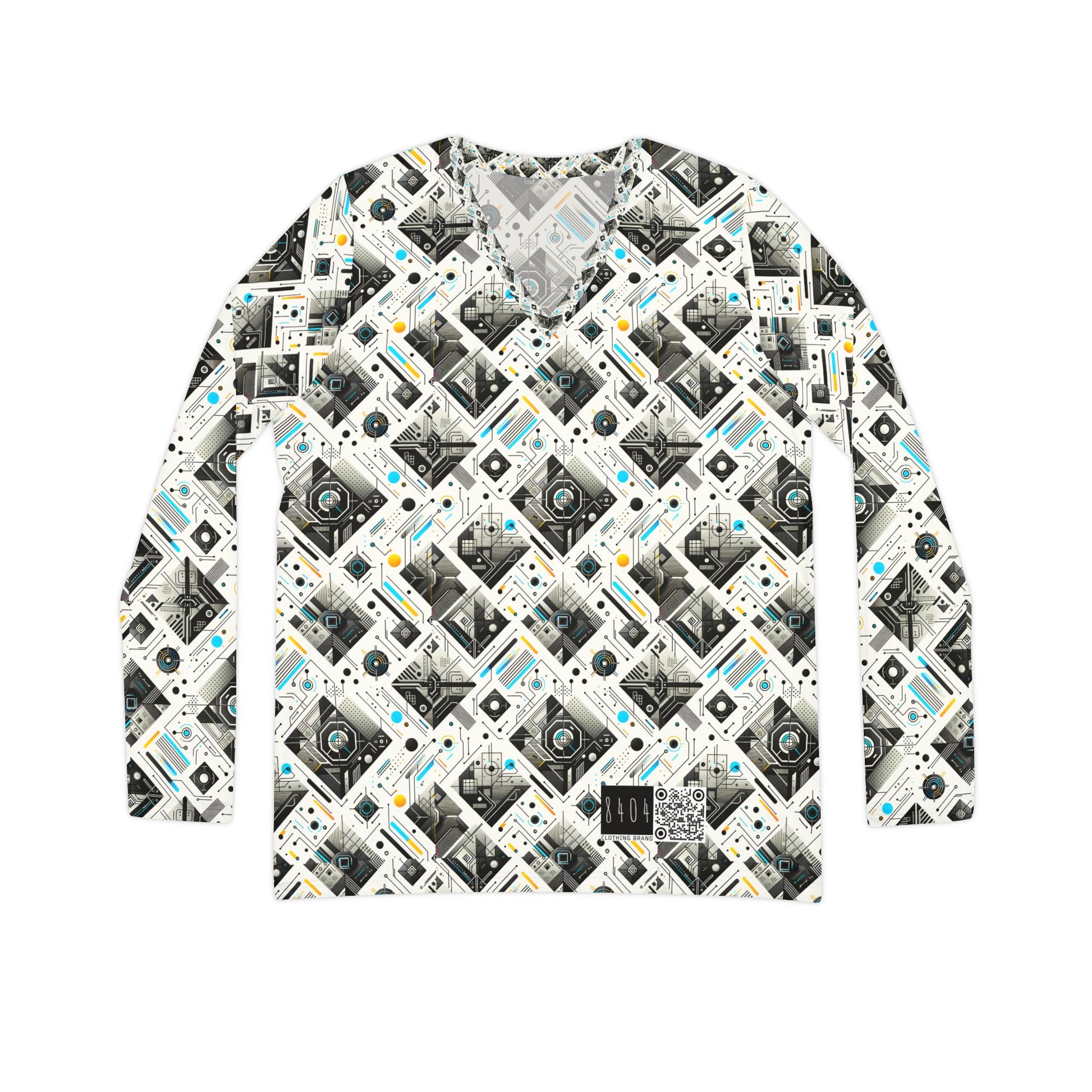 Tech Minimalism Minimalist Tech Women's Long Sleeve V-Neck Shirt - 8404 Design-47