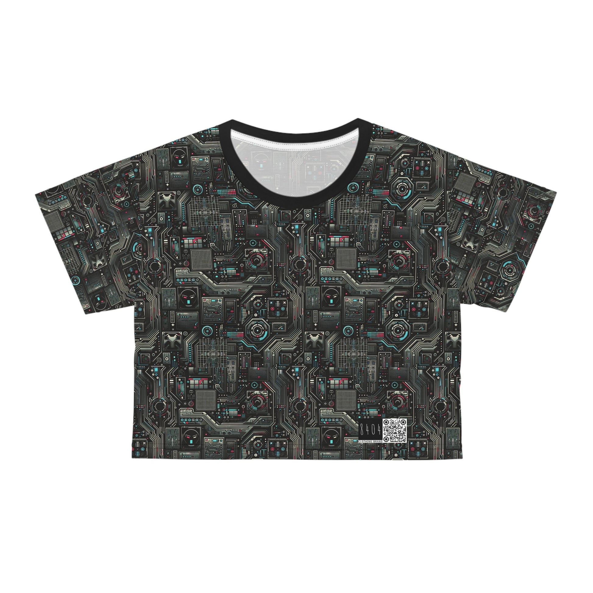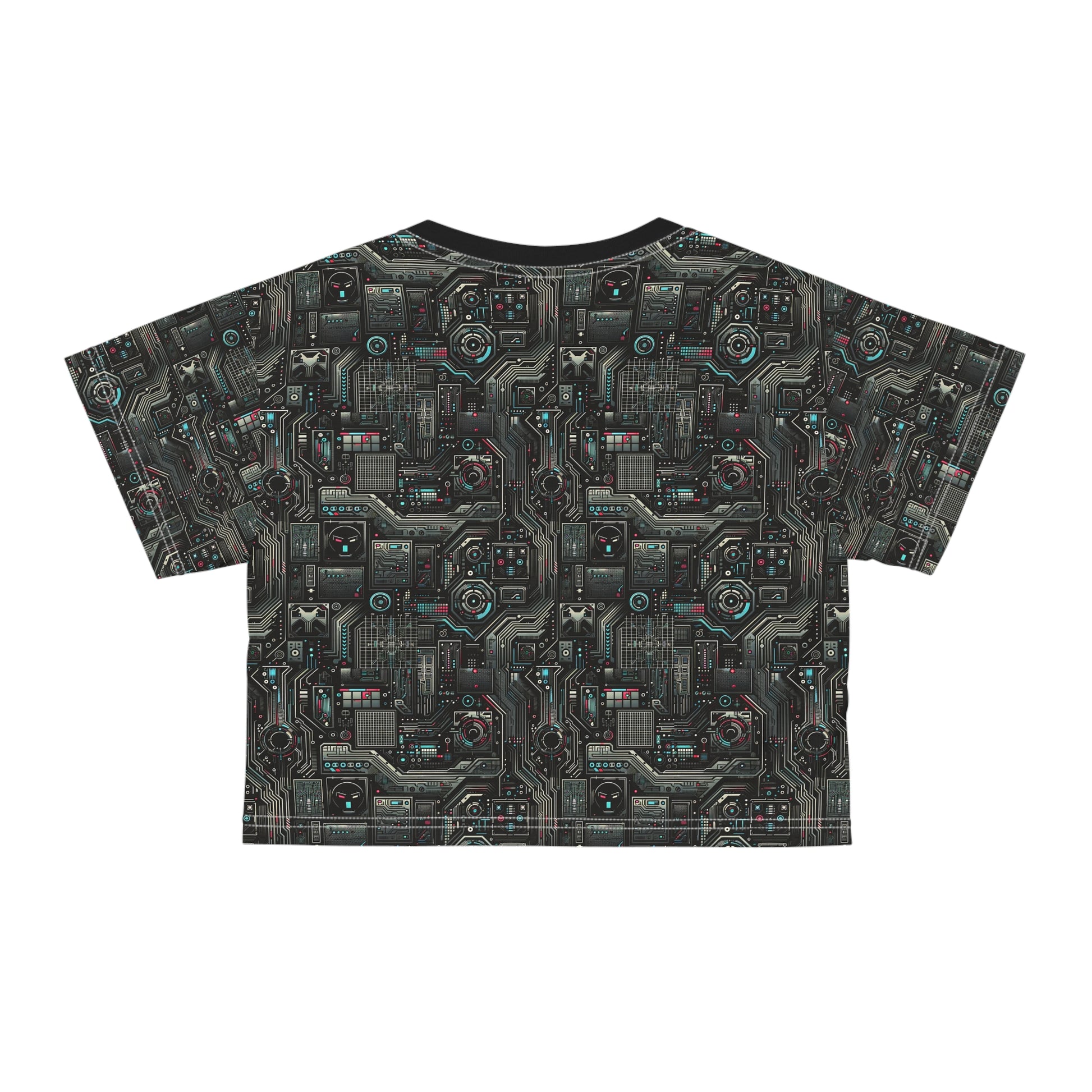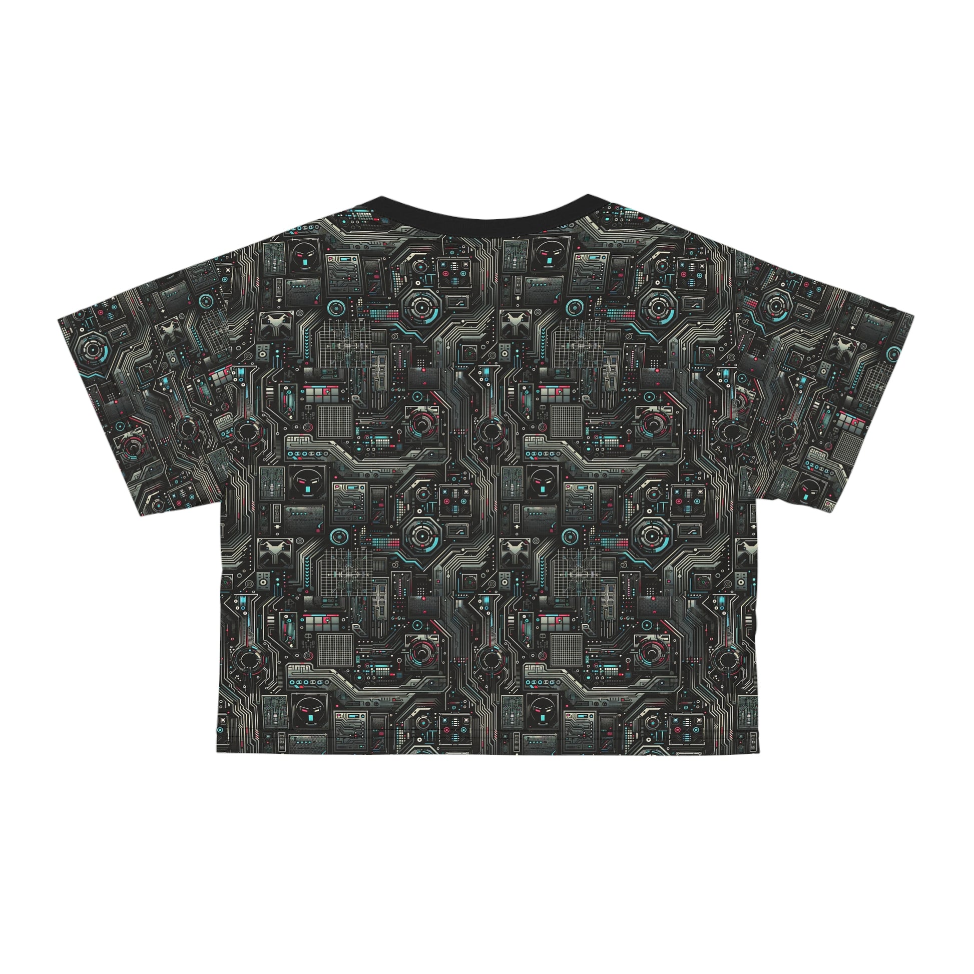 Tech Noir Aesthetics Sleek Tech Streetwear Crop Tee - 8404 Design-52
