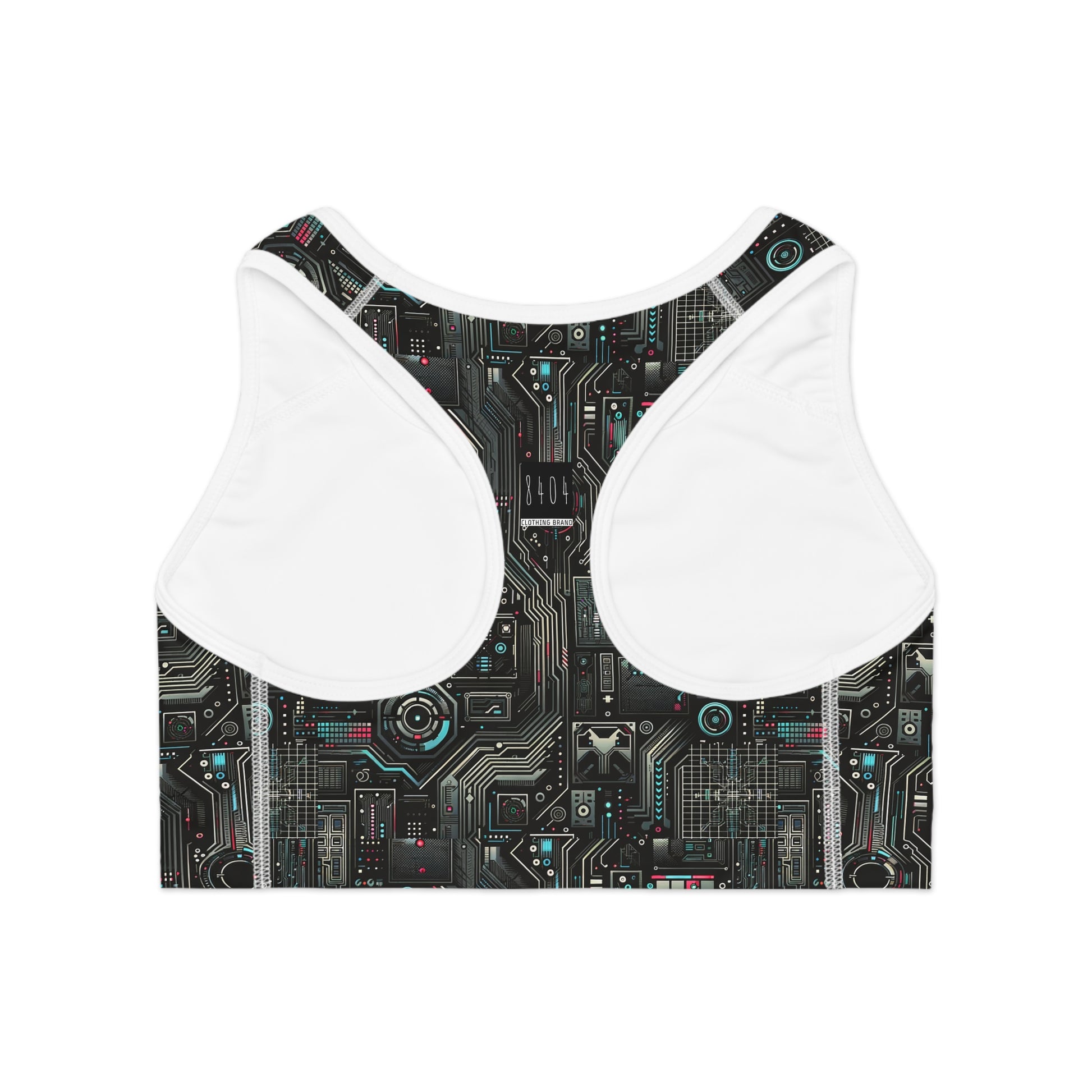 Tech Noir Aesthetics Sleek Tech Streetwear Sports Bra - 8404 Design-52