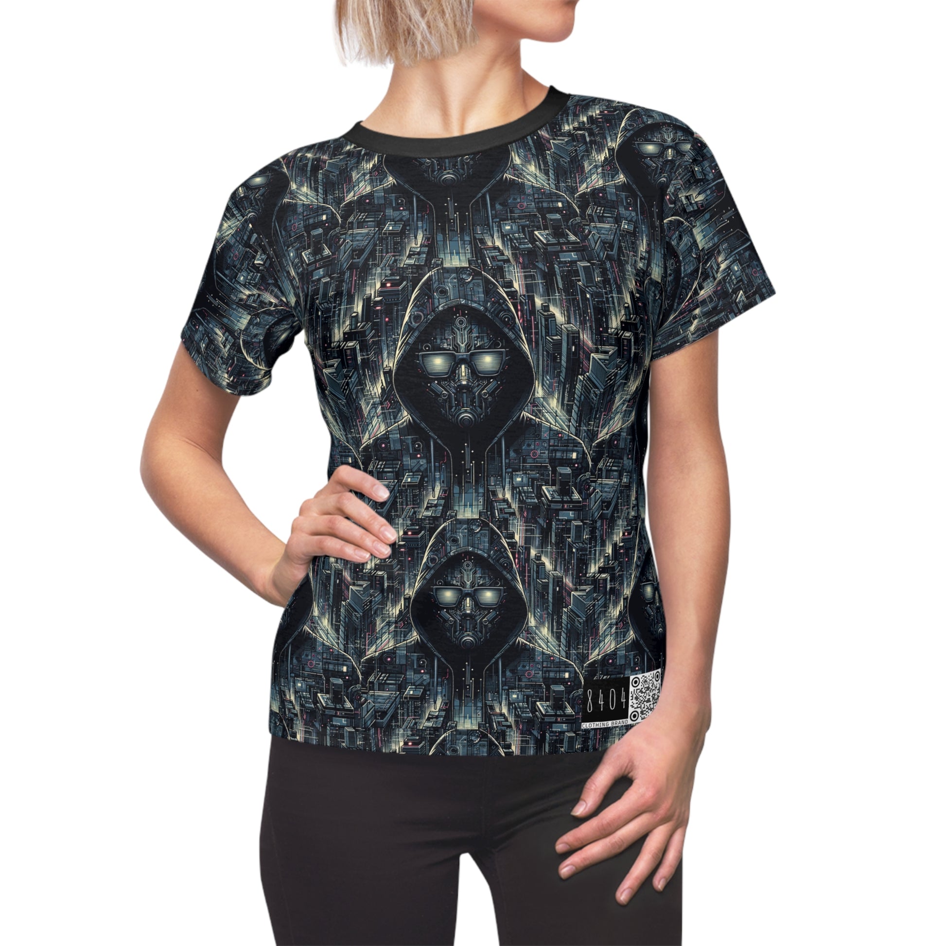 Tech Noir Aesthetics Sleek Tech Streetwear Women's Cut & Sew Tee - 8404 Design-56