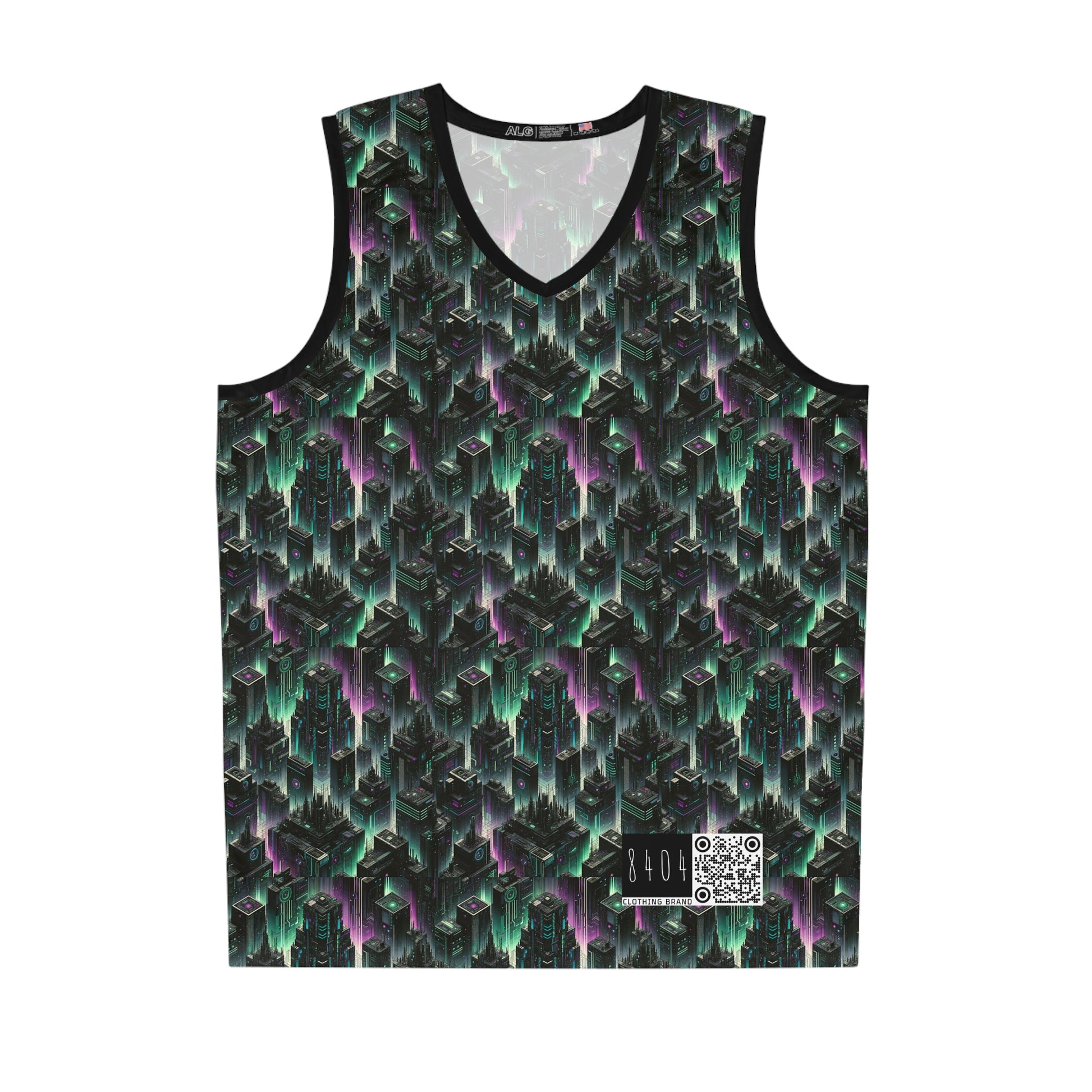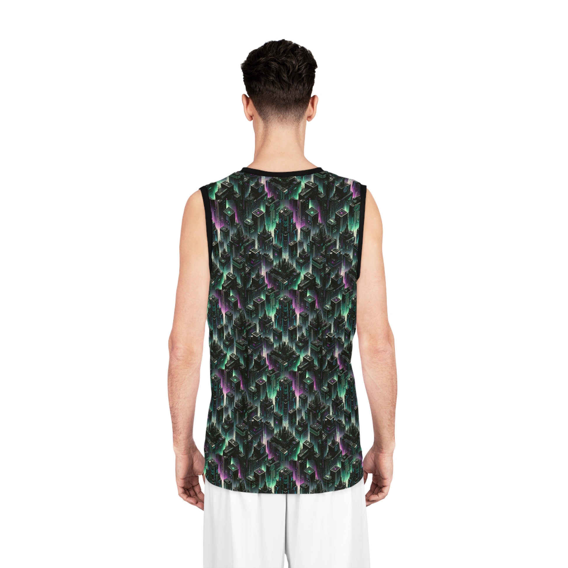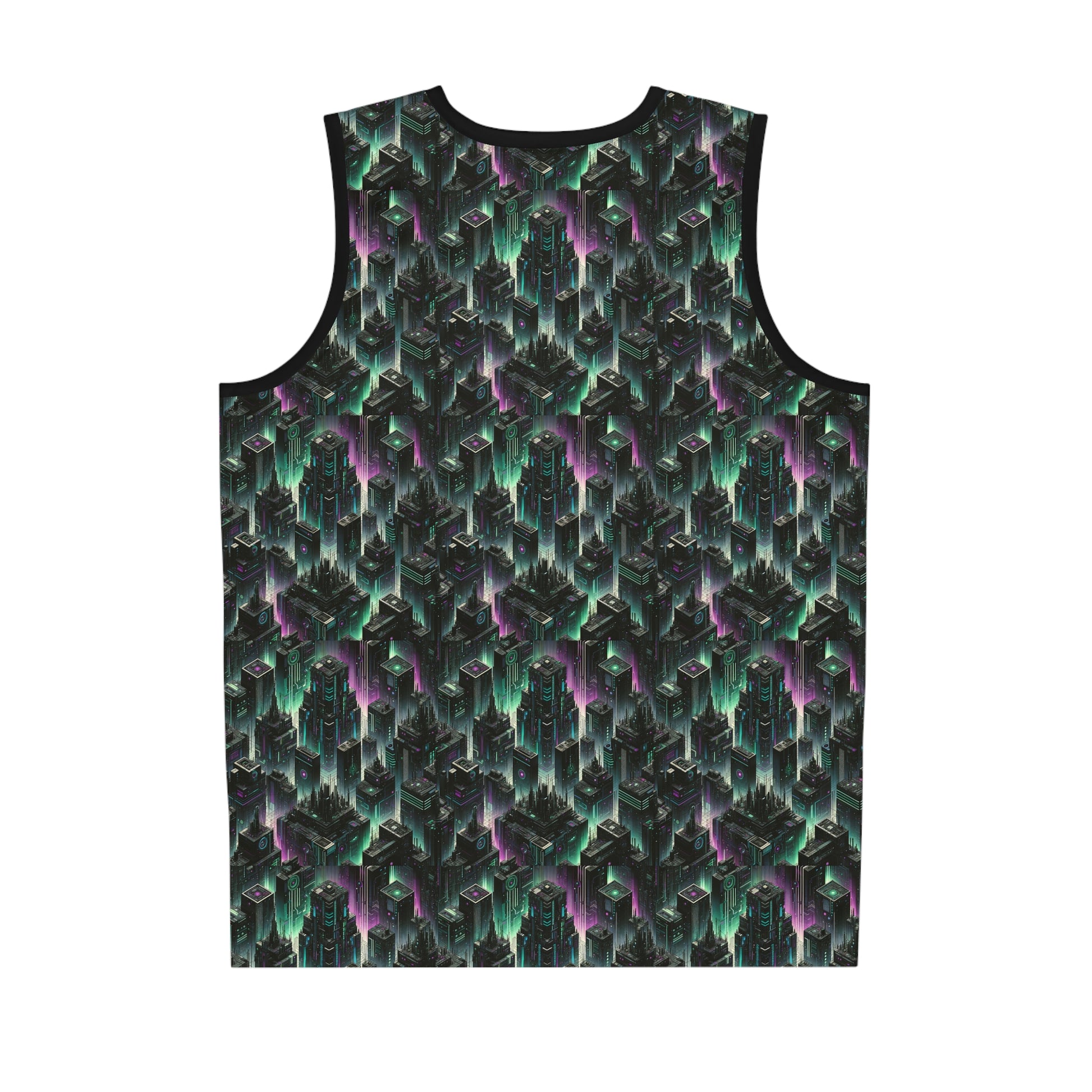 Tech Noir Aesthetics Tech-Forward Urban Dystopia Basketball Jersey - 8404 Design-44