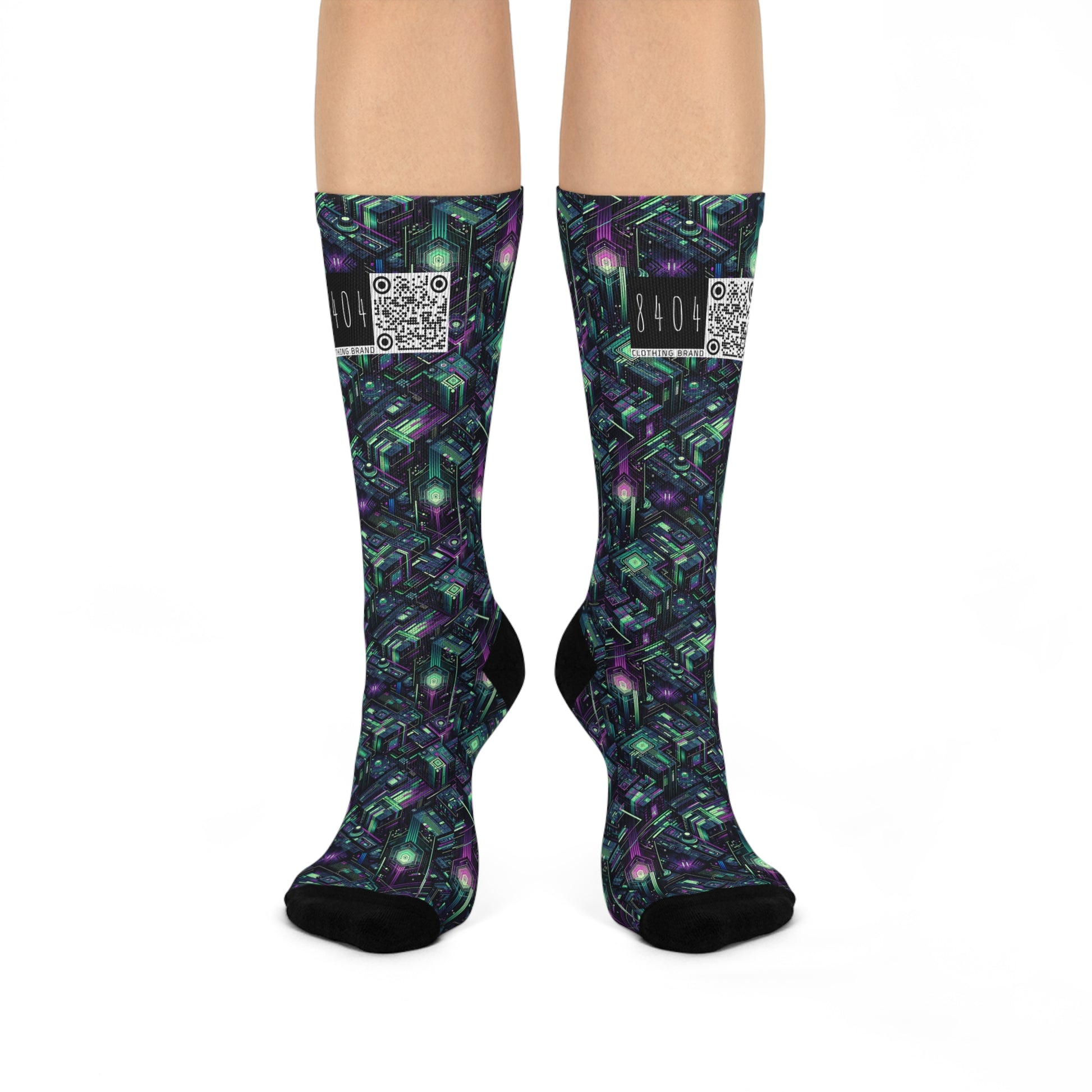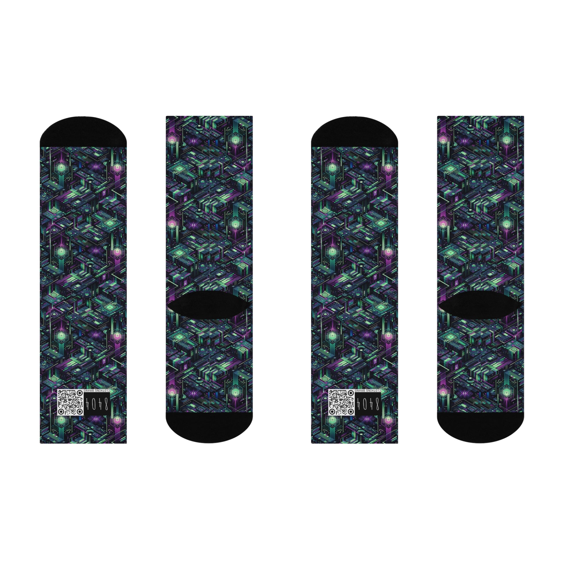 Tech Noir Aesthetics Tech-Forward Urban Dystopia Cushioned Crew Socks - 8404 Design-43